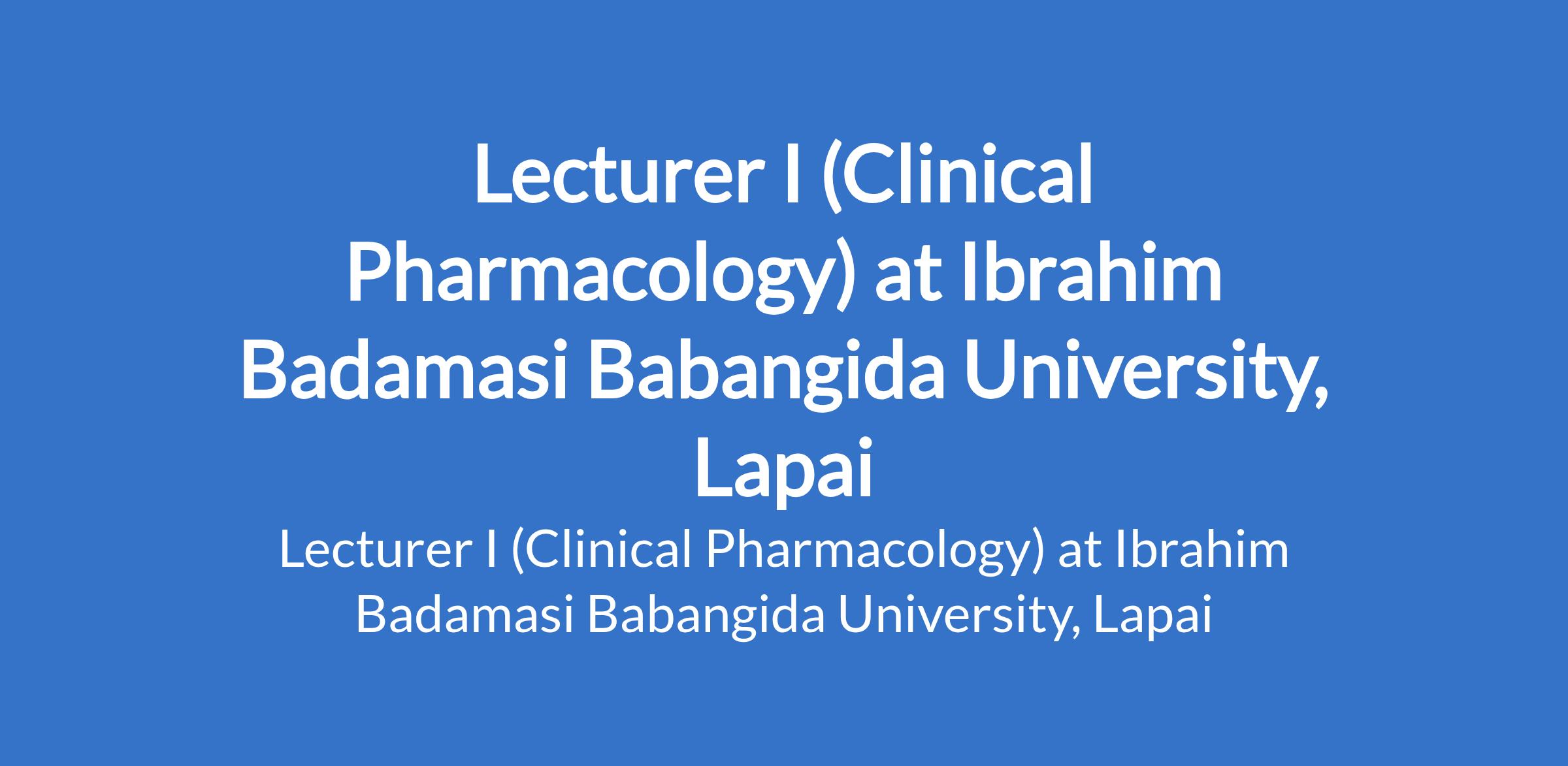Ibrahim Badamasi Babangida University, Lapai invites applications from suitably qualified candidates to fill the position of: Lecturer I (Clinical Pharmacology). The position is located in Niger State. Interested candidates must possess an M.B.B.S plus Master's Degree (M.Sc), Fellowship of the National Postgraduate Medical College of Nigeria or its equivalent in the relevant specialty/sub specialty with at least 3 years relevant experience.
