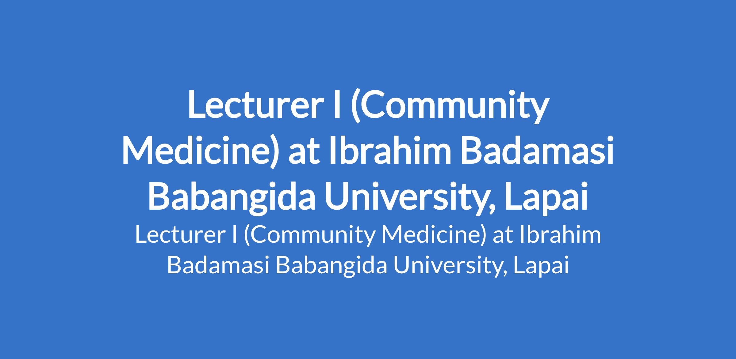 Ibrahim Badamasi Babangida University, Lapai invites applications from suitably qualified candidates to fill the position of: Lecturer I (Community Medicine). The position is located in Niger State. Interested candidates must possess an M.B.B.S plus Master's Degree (M.Sc), Fellowship of the National Postgraduate Medical College of Nigeria or its equivalent in the relevant specialty/sub specialty with at least 3 years relevant experience.