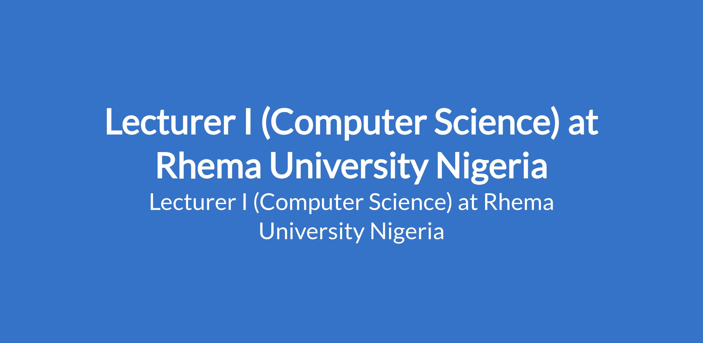 Rhema University Nigeria invites applications from suitably qualified candidates for the position of: Lecturer I (Computer Science). The position is located in Aba, Abia State. Interested candidates should possess a Ph.D Degree with at least 3 years post qualification experience in Computer Science, and evidence of scholary publications.