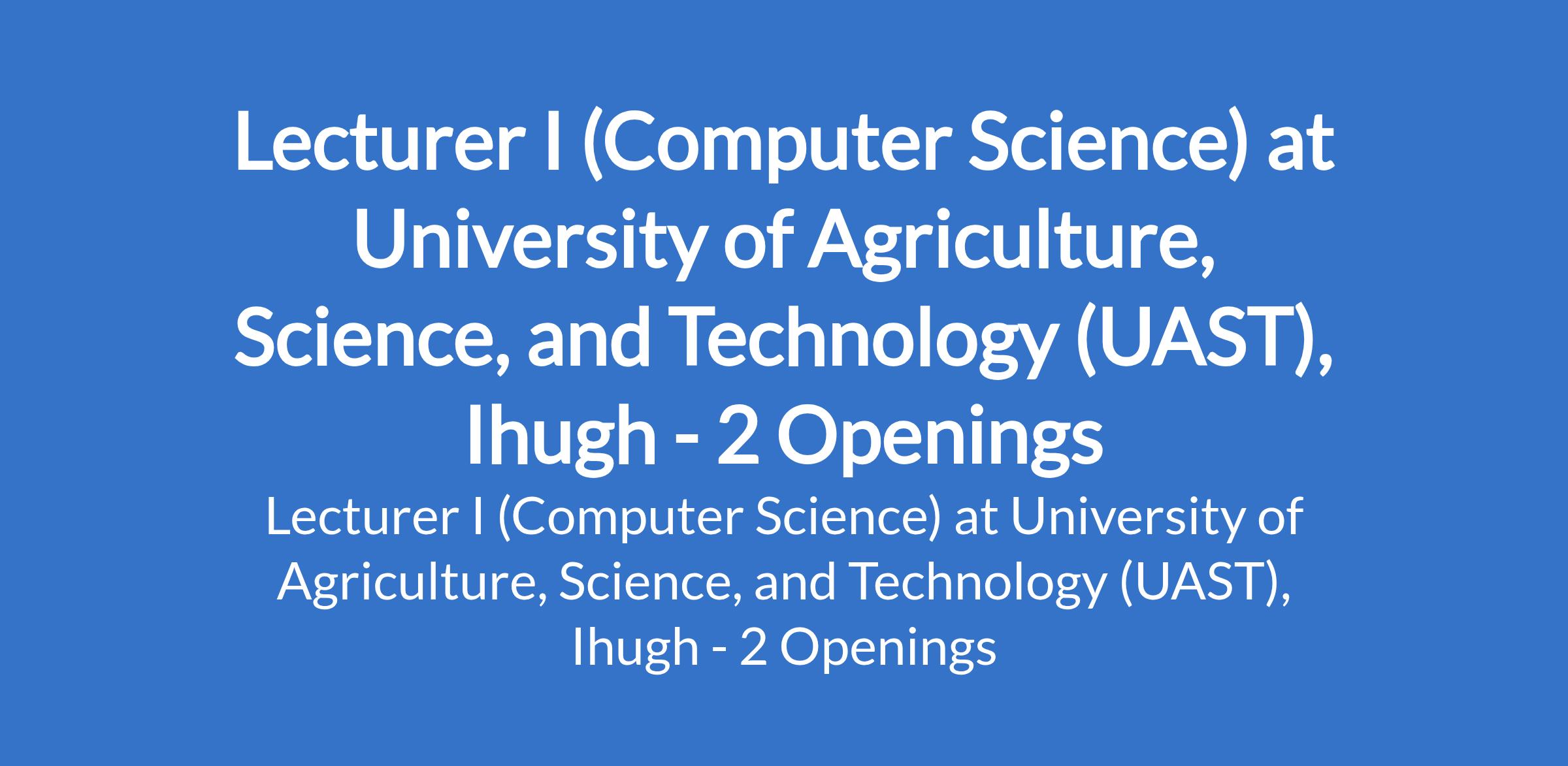 University of Agriculture, Science, and Technology (UAST), Ihugh is recruiting to fill the position of: Lecturer I (Computer Science). The position is located in Benue State. Interested candidates should possess a PhD Degree in Computer Science or Senate-approved cognate with strong computing scholarship, a minimum of four (4) publications in reputable peer-reviewed journals with at least three (3) years experience as Lecturer II (or equivalent). Evidence of software patents, platforms, tools or high-impact applied solutions is an advantage.