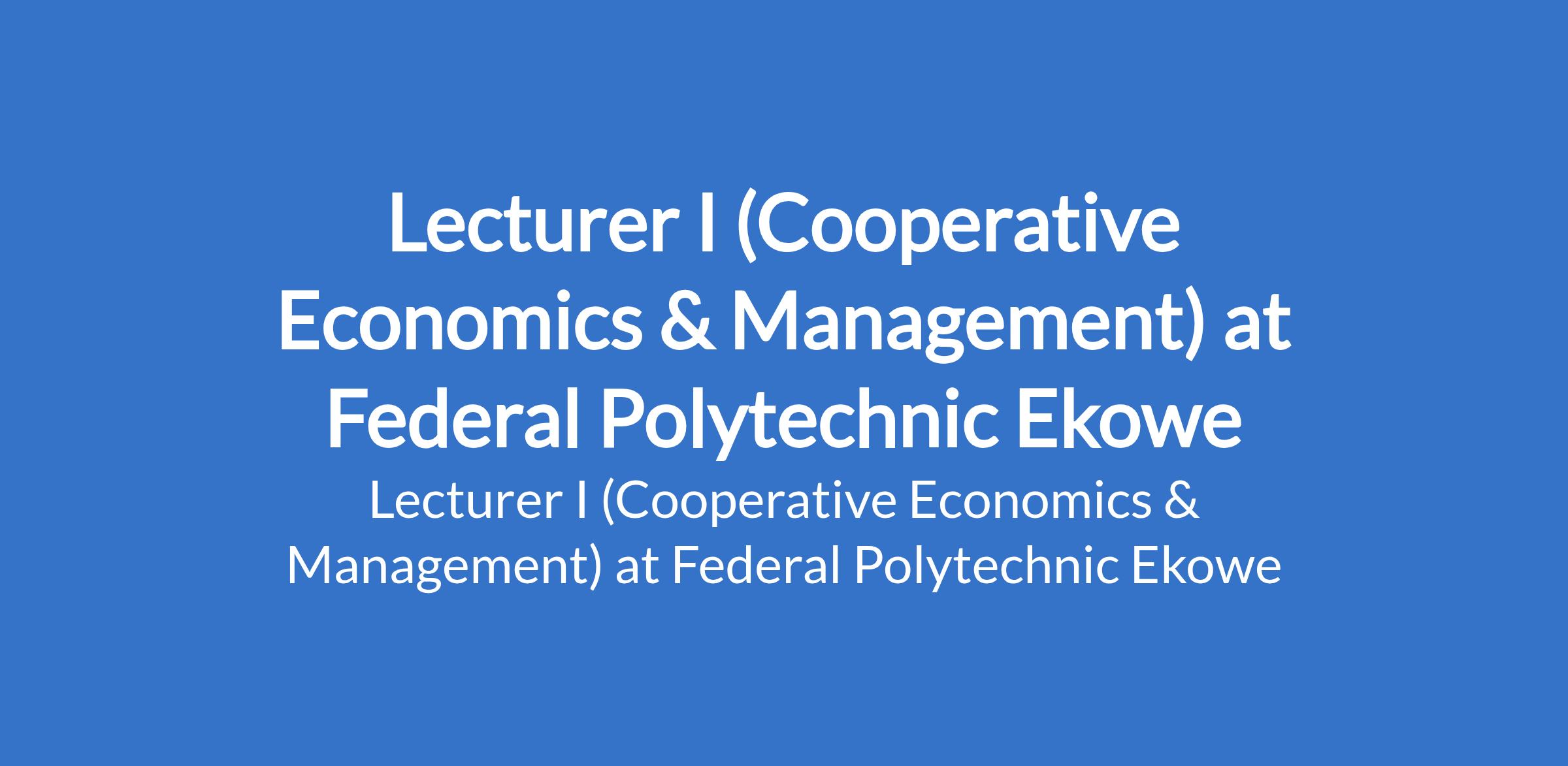 Federal Polytechnic Ekowe invites applications from suitably qualified candidates for the position of: Lecturer I (Cooperative Economics & Management). The position is located in Bayelsa State. Interested candidates should possess a Master's Degree in relevant fields from a recognized institution with at least six (6) years or a PhD Degree in relevant disciplines with at least three (3) years teaching/research or industrial work experience; and must be registered with the relevant professional body.