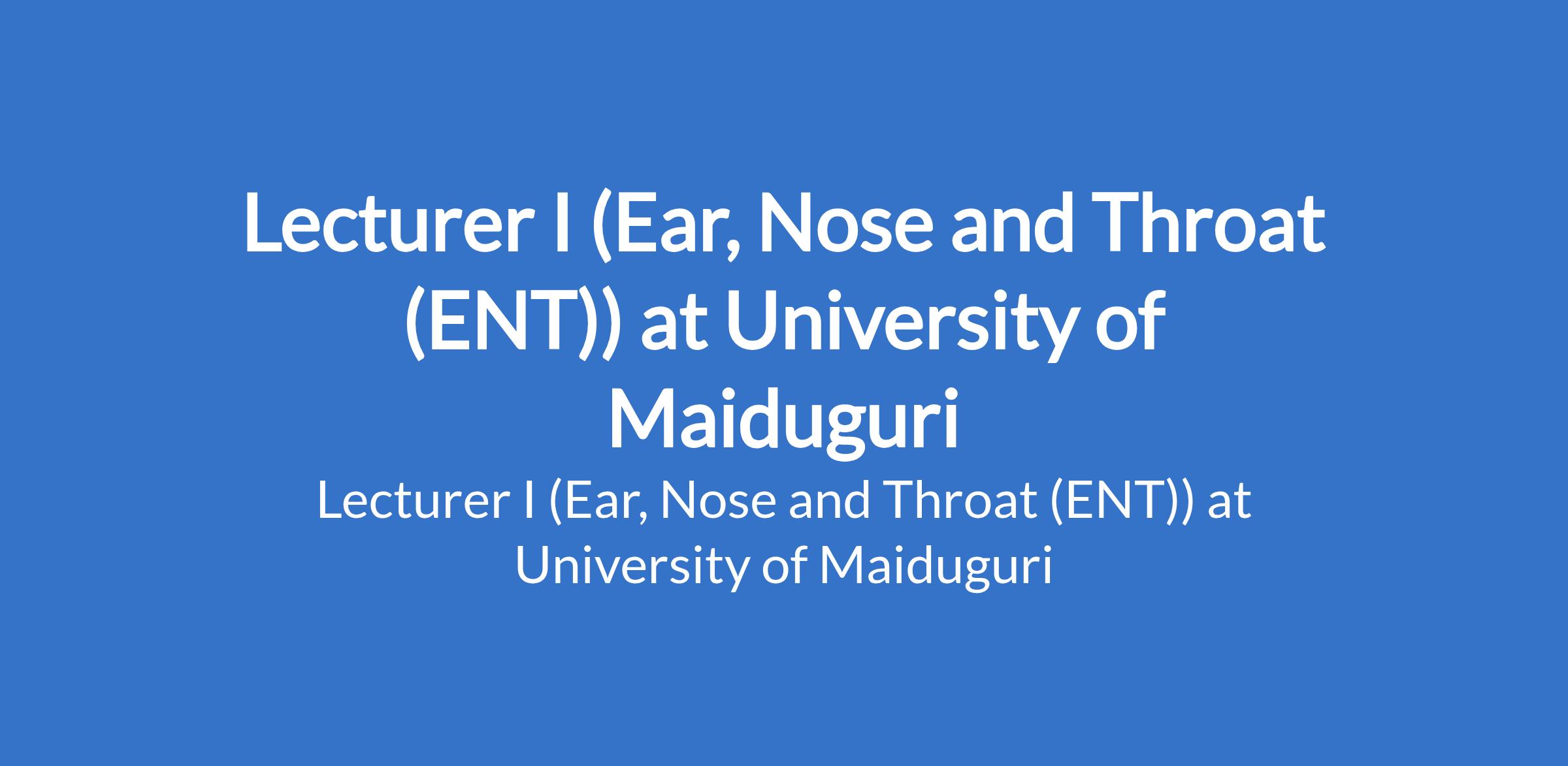 University of Maiduguri invites applications from suitable candidates to fill the position of: Lecturer I (Ear, Nose and Throat (ENT)). The position is located in Borno State. Interested candidates should be a Master's Degree holder who has served as Lecturer II or equivalent for three years with a minimum of four years teaching experience and at least 16 admissible publication points, or recognised higher professional postgraduate fellowship where applicable.