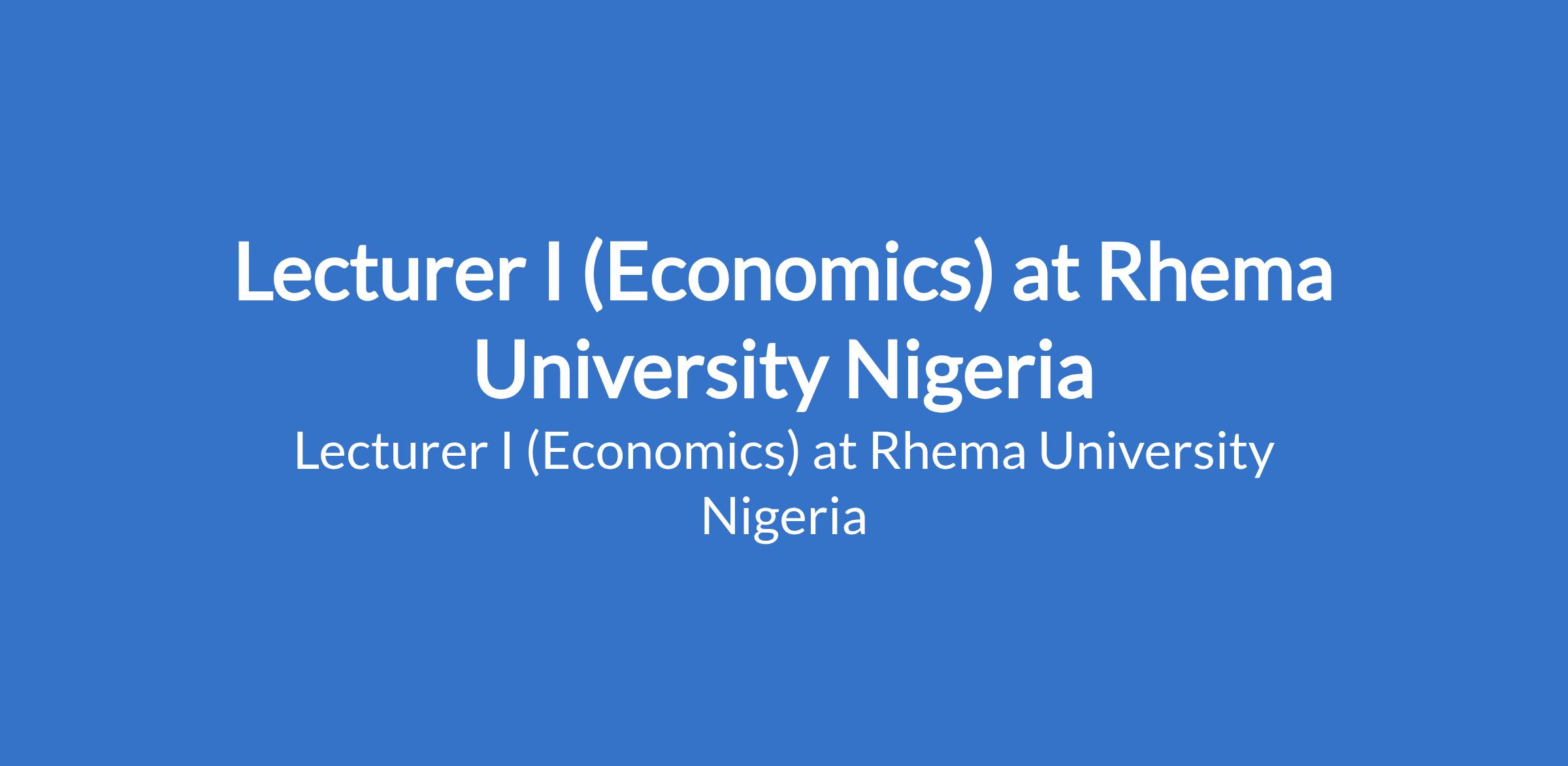 Rhema University Nigeria invites applications from suitably qualified candidates for the position of: Lecturer I (Economics). The position is located in Aba, Abia State. Interested candidates should possess a Ph.D Degree with at least 3 years post qualification experience in Economics, and evidence of scholary publications.