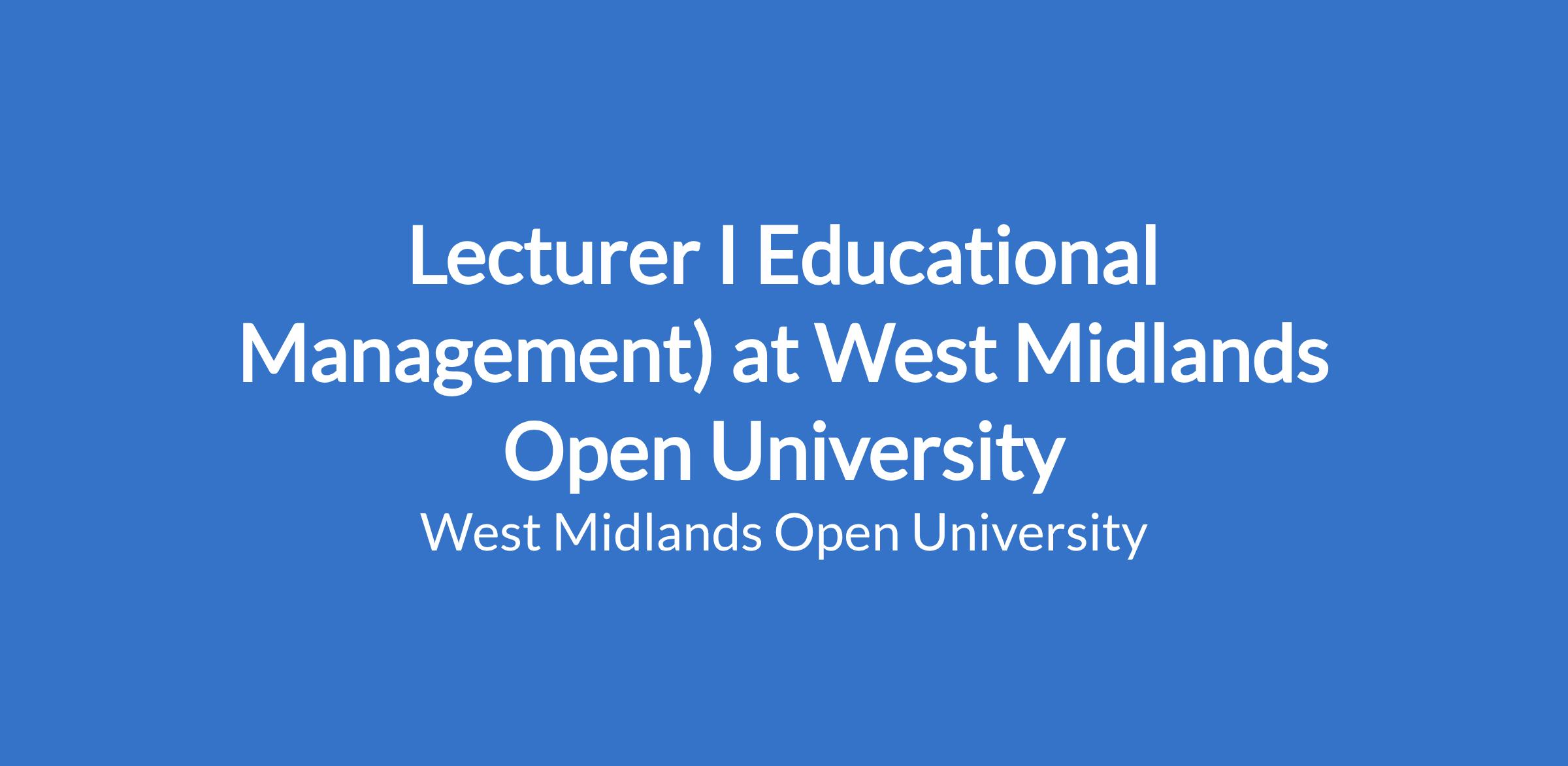 Lecturer I Educational Management) at West Midlands Open University