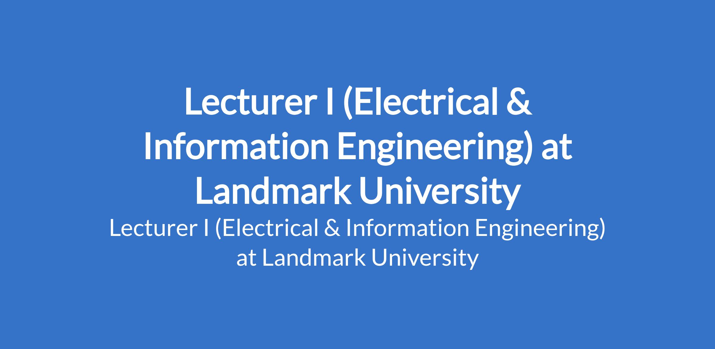 Landmark University invites applications from suitable candidates to fill the position of: Lecturer I (Electrical & Information Engineering). The position is located in Omu-Aran, Kwara State. Interested candidates should possess a Ph.D. Degree from a reputable university, with at least 3 year post-qualification teaching experience, evidence of scholarly publications.