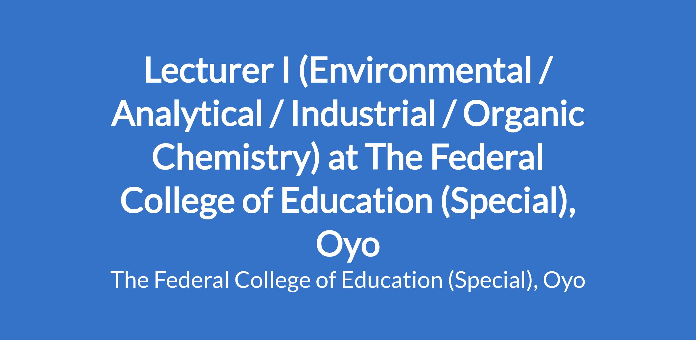 Lecturer I (Environmental / Analytical / Industrial / Organic Chemistry) at The Federal College of Education (Special), Oyo