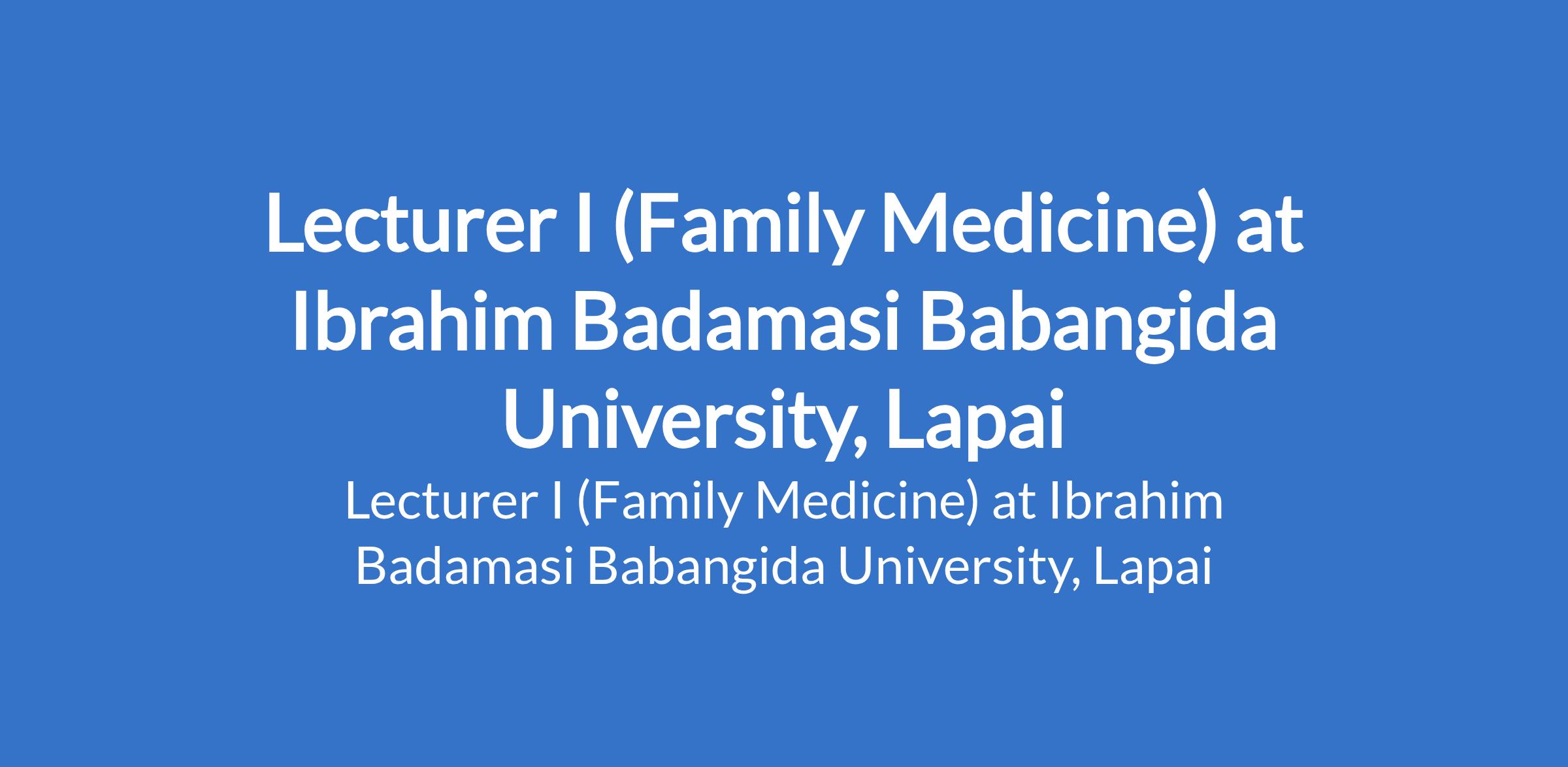 Ibrahim Badamasi Babangida University, Lapai invites applications from suitably qualified candidates to fill the position of: Lecturer I (Family Medicine). The position is located in Niger State. Interested candidates must possess an M.B.B.S plus Master's Degree (M.Sc), Fellowship of the National Postgraduate Medical College of Nigeria or its equivalent in the relevant specialty/sub specialty with at least 3 years relevant experience.
