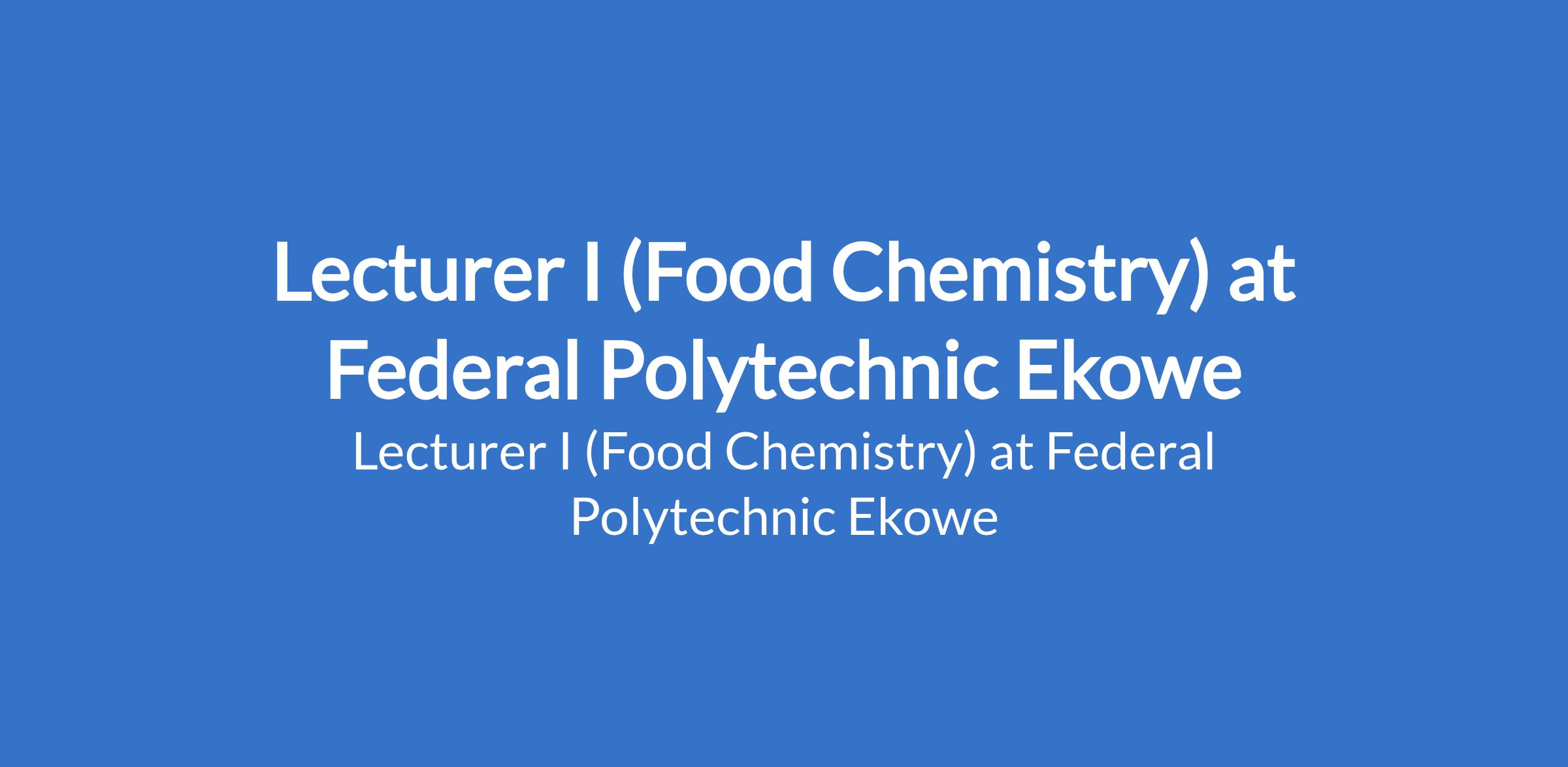 The Federal Polytechnic Ekowe invites applications from suitably qualified candidates for the position of: Lecturer I (Food Chemistry). The position is located in Bayelsa State. Interested candidates should possess a Mastar's Degree in relevant field from a recognized institution with at least six (6) years Or PhD. in relevant discipline with at least three (3) years teaching /research or industrial work experience; Must be registered with the relevant professional body.