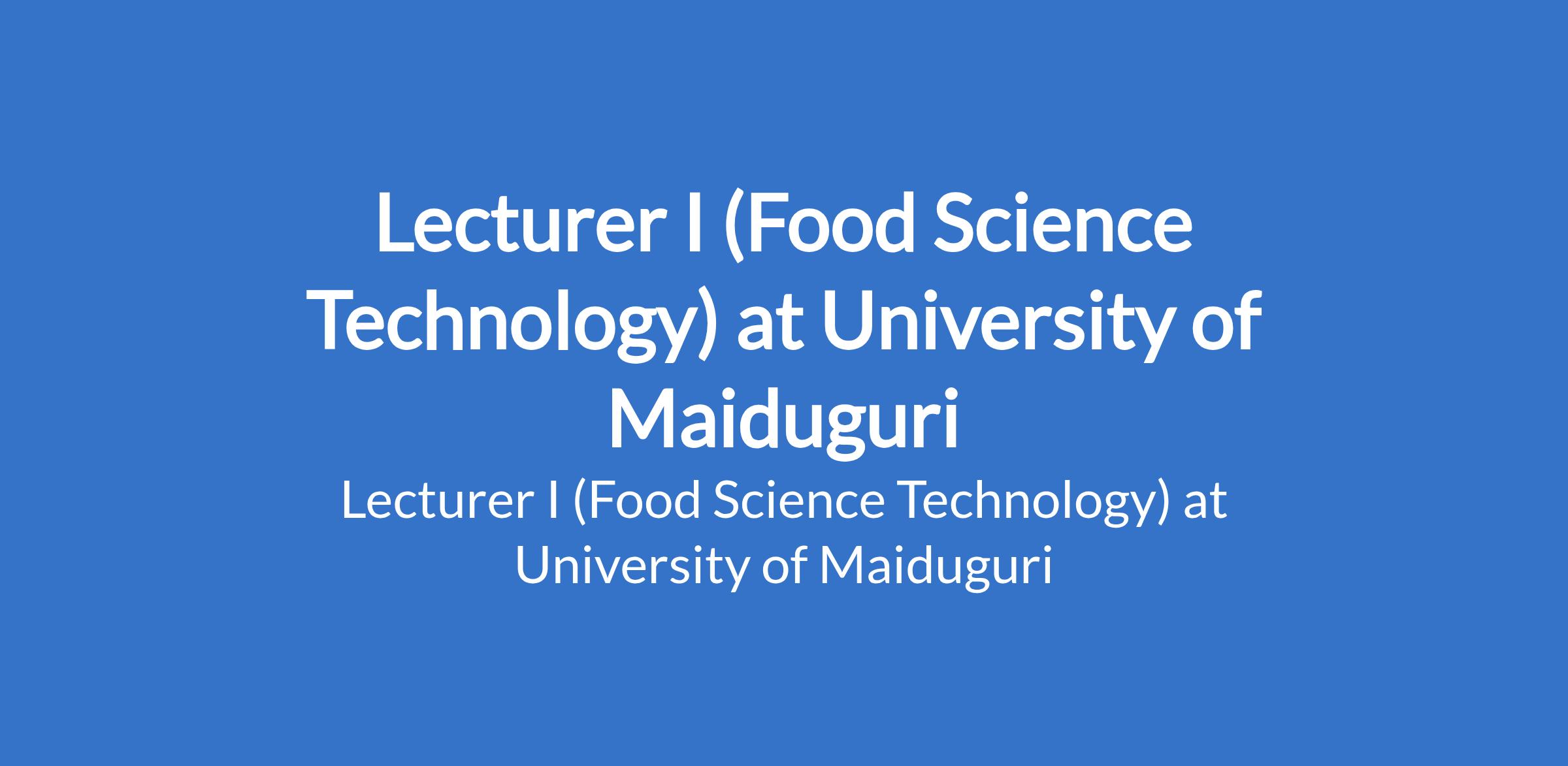 University of Maiduguri invites applications from suitable candidates to fill the position of: Lecturer I (Food Science Technology). The position is located in Borno State. Interested candidates should be a Master's Degree holder who has served as Lecturer II or equivalent for three years with a minimum of four years teaching experience and at least 16 admissible publication points, or recognised higher professional postgraduate fellowship where applicable.