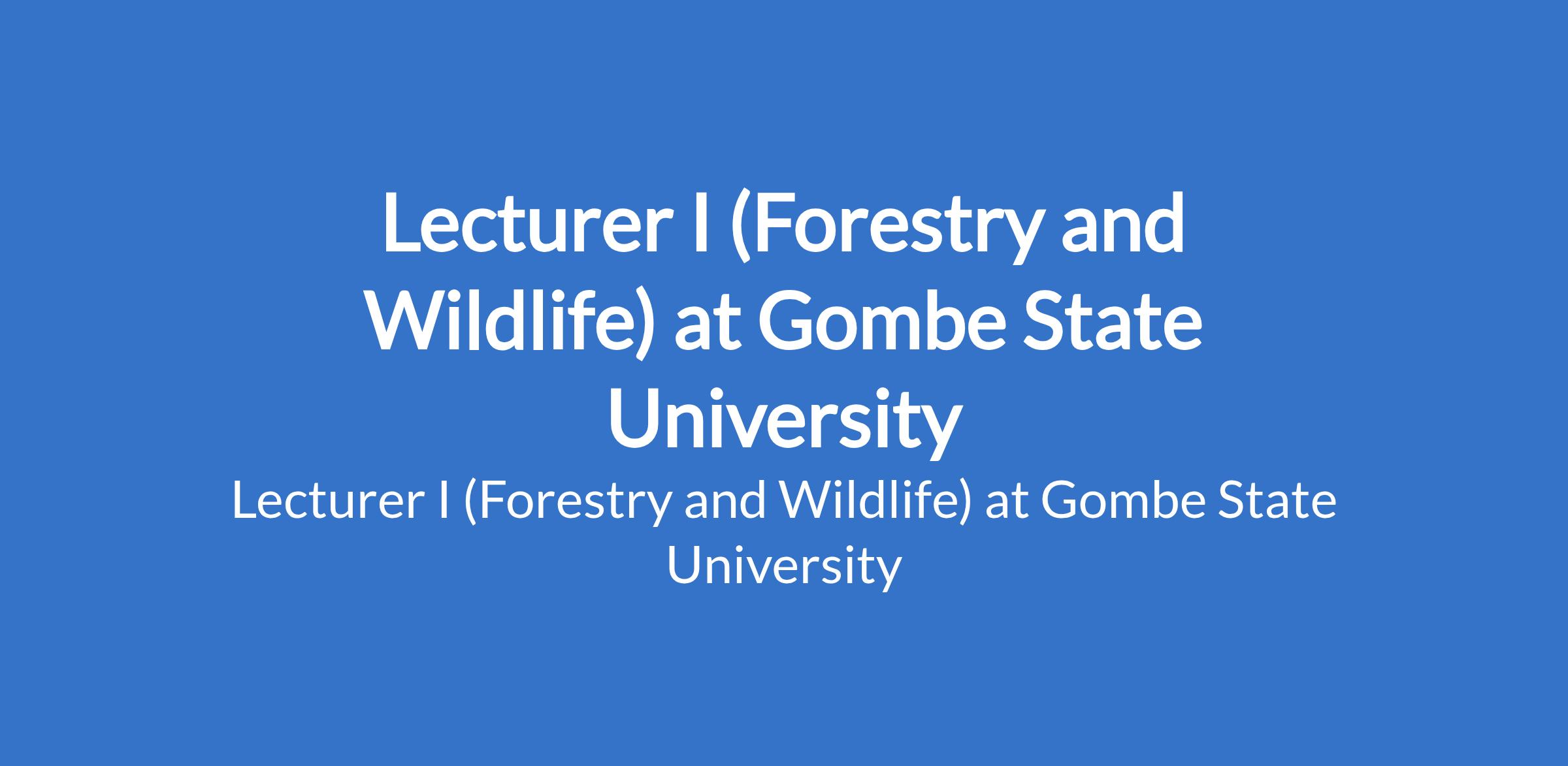 Gombe State University invites applications from suitable candidates to fill the position of: Lecturer I (Forestry and Wildlife). The position is located in Tudun - Wada, Gombe State. Interested candidates should possess a Ph.D Degree in a relevant discipline, minimum of three years as Lecturer II or equivalent, 3 - 6 years of teaching experience; with at least 12 publication points. Alternatively, a Master`s Degree with three years of teaching / research experience as Lecturer II, and at least 15 publication points.