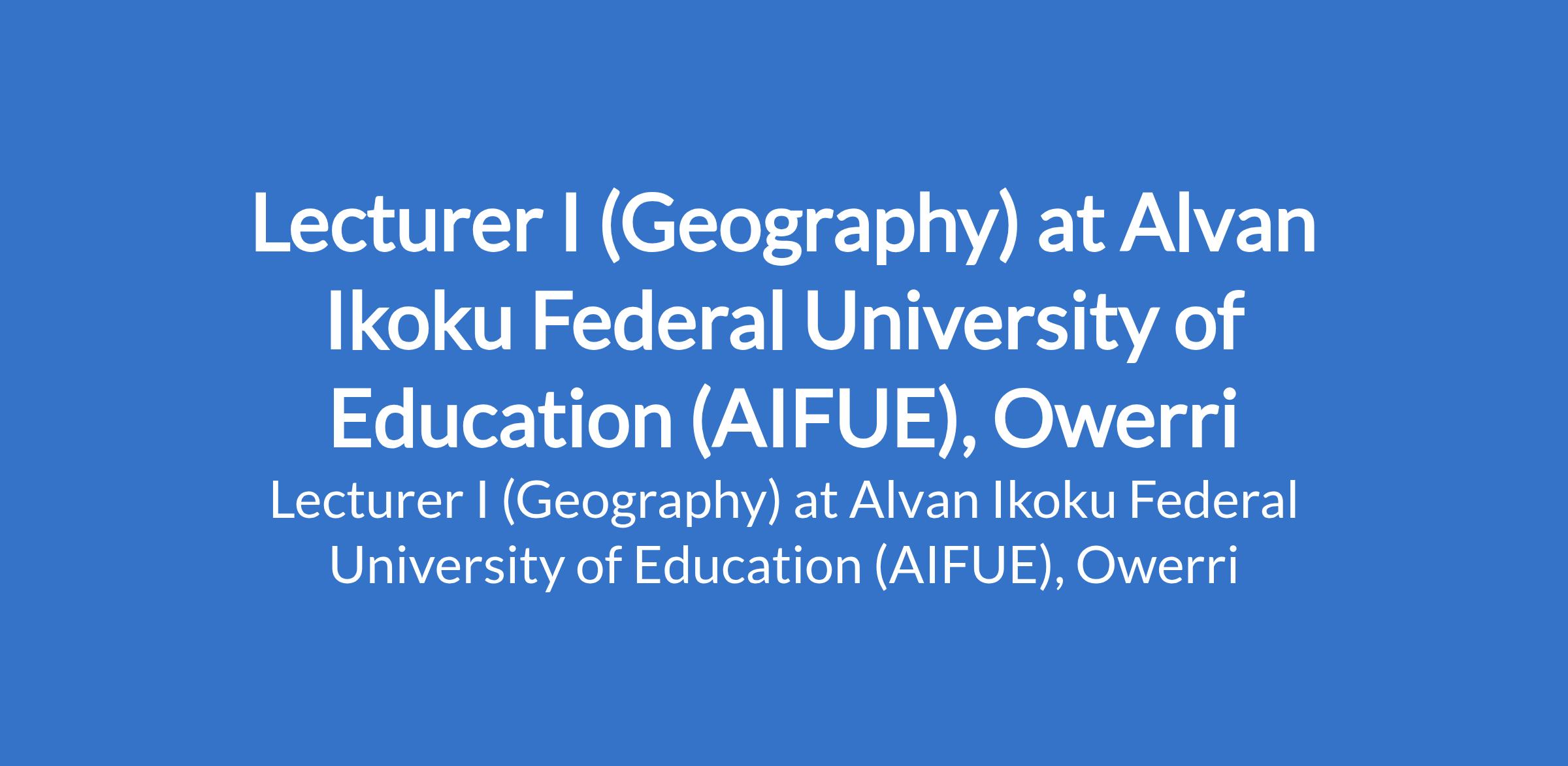Alvan Ikoku Federal University of Education (AIFUE), Owerri invites applications from suitably qualified candidates for the position of: Lecturer I (Geography). The position is located in Imo State. Interested candidates should possess a Master's Degree in the relevant field with a minimum of 6 years of teaching and research experience, and not less than 3 years as a Lectuer II in a recognized university.