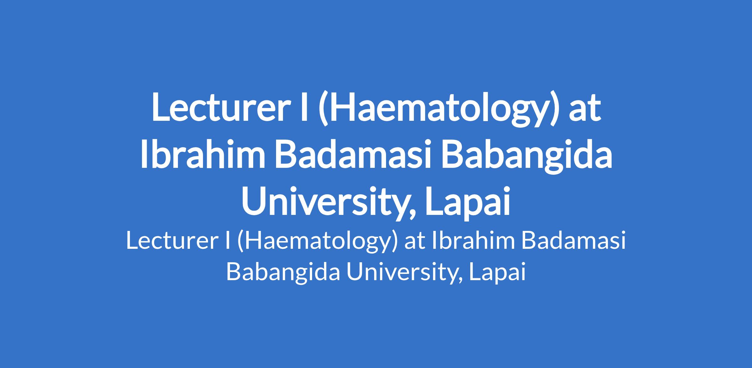 Ibrahim Badamasi Babangida University, Lapai invites applications from suitably qualified candidates to fill the position of: Lecturer I (Haematology). The position is located in Niger State. Interested candidates must possess an M.B.B.S plus Master's Degree (M.Sc), Fellowship of the National Postgraduate Medical College of Nigeria or its equivalent in the relevant specialty/sub specialty with at least 3 years relevant experience.
