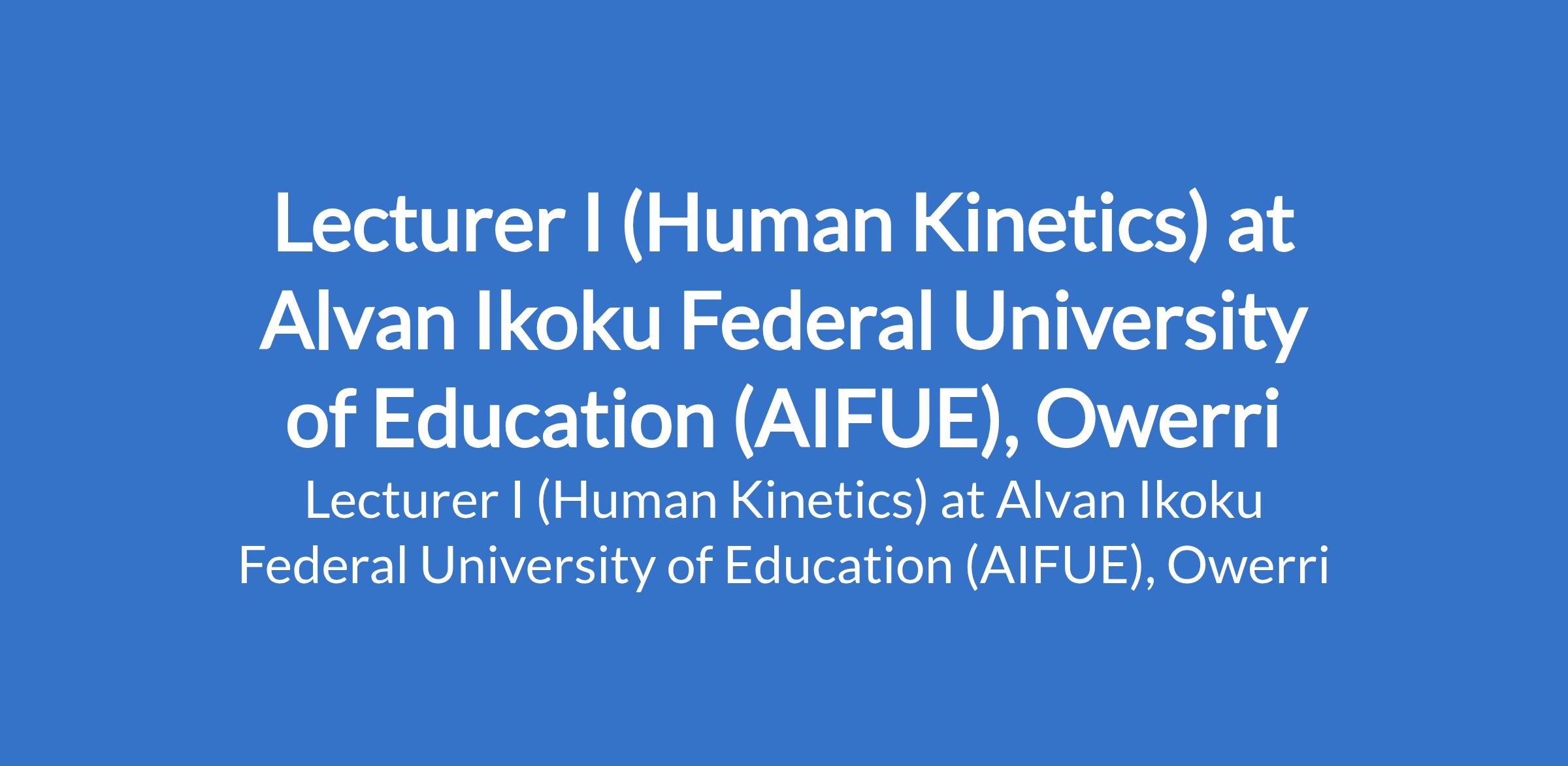 Alvan Ikoku Federal University of Education (AIFUE), Owerri invites applications from suitably qualified candidates for the position of: Lecturer I (Human Kinetics). The position is located in Imo State. Interested candidates should possess a Master's Degree in the relevant field with a minimum of 6 years of teaching and research experience, and not less than 3 years as a Lectuer II in a recognized university. A PhD in the relevant field shall be an advantage. Applicants must possess evidence of a teaching / research experience with scholary publications.