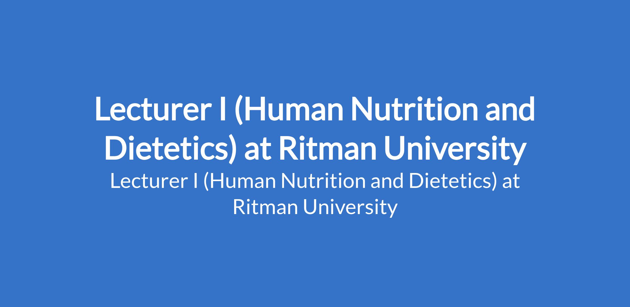 Ritman University is recruiting to fill the position of: Lecturer I (Human Nutrition and Dietetics). The position is located in Ikot Ekpene, Akwa Ibom State. Interested candidates should possess a Doctorate Degree (Ph.D.) in the relevant field from a recognized institution and also a good first Degree (Bachelor's) and a Masters Degree in the relevant discipline with at least 5 years of post-qualification relevant teaching and research experience in a university.