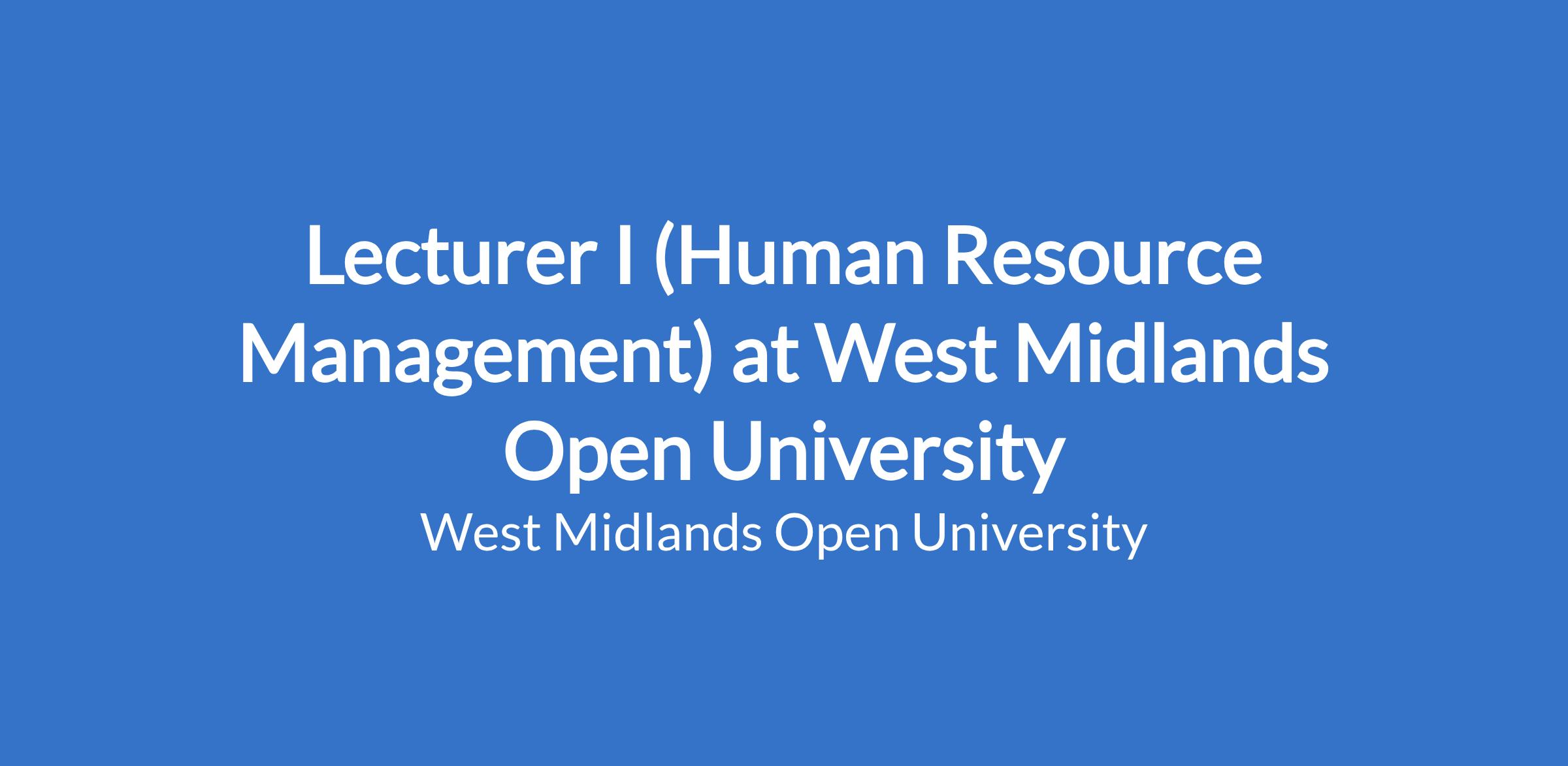 Lecturer I (Human Resource Management) at West Midlands Open University