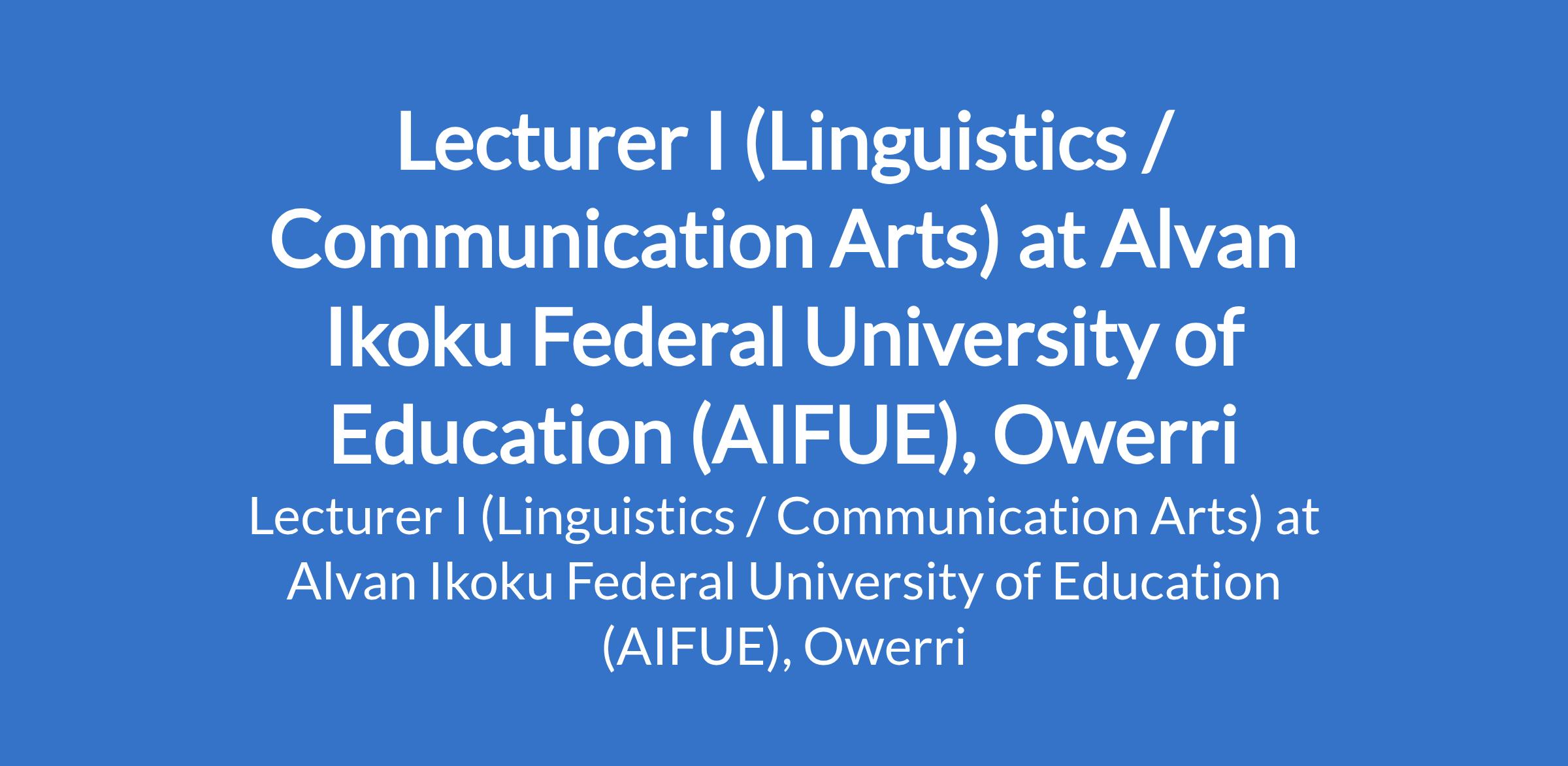 Alvan Ikoku Federal University of Education (AIFUE), Owerri invites applications from suitably qualified candidates for the position of: Lecturer I (Linguistics / Communication Arts). The position is located in Imo State. Interested candidates should possess a Master's Degree in the relevant field with a minimum of 6 years of teaching and research experience, and not less than 3 years as a Lectuer II in a recognized university. A PhD in the relevant field shall be an advantage. Applicants must possess evidence of a teaching / research experience with scholary publications.