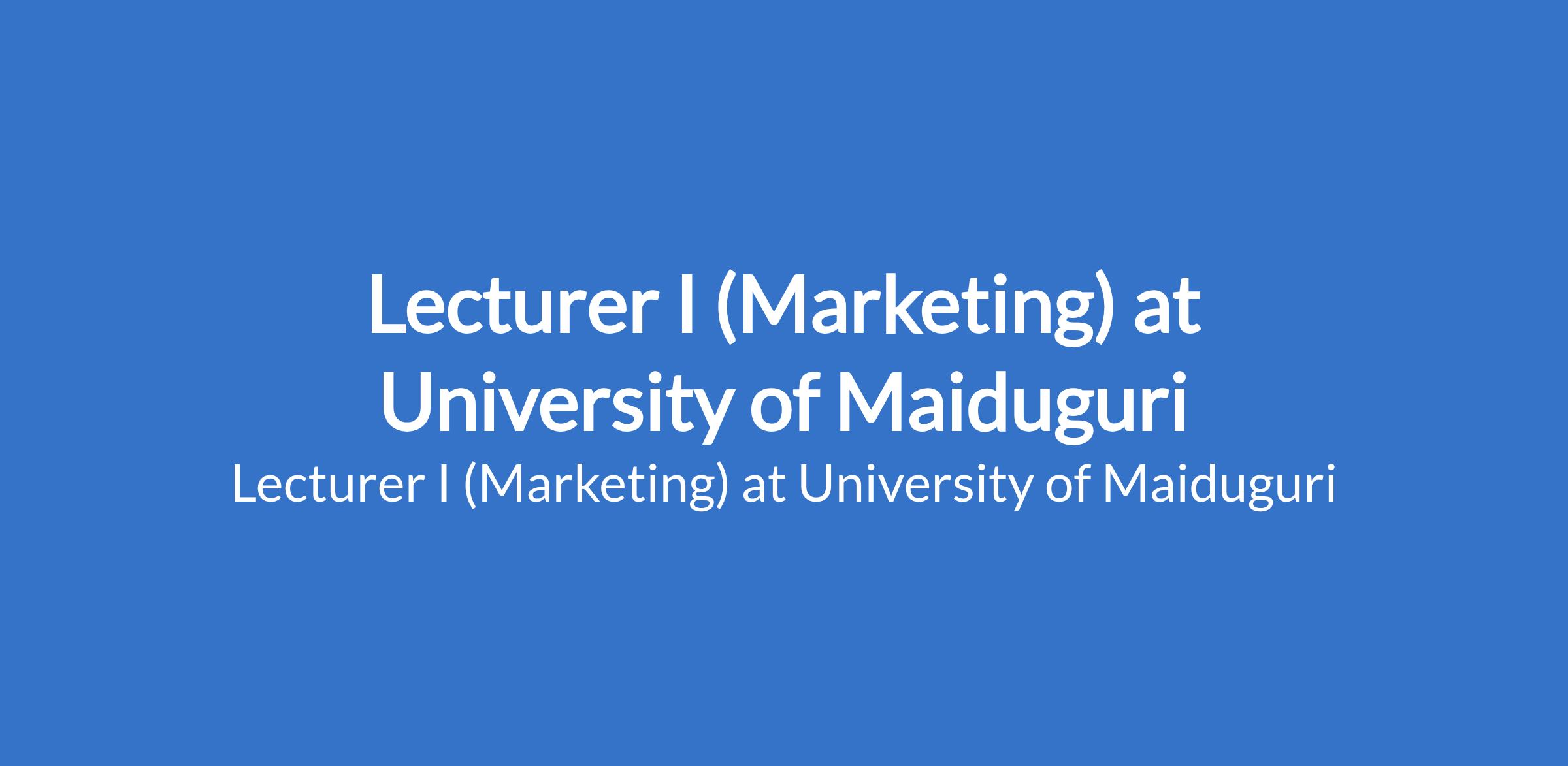 University of Maiduguri invites applications from suitable candidates to fill the position of: Lecturer I (Marketing). The position is located in Borno State. Interested candidates should be a Master's Degree holder who has served as Lecturer II or equivalent for three years with a minimum of four years teaching experience and at least 16 admissible publication points, or recognised higher professional postgraduate fellowship where applicable.