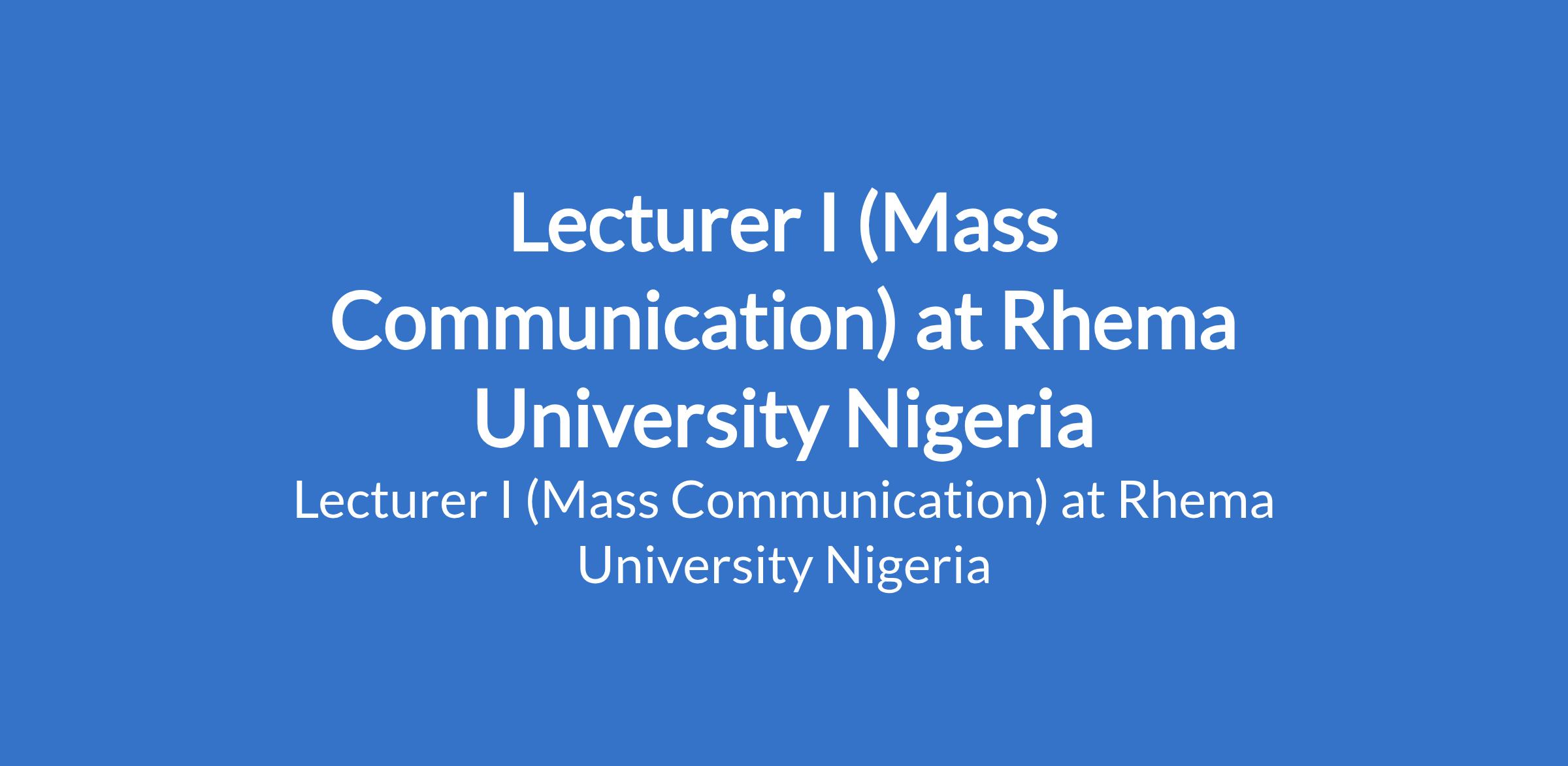 Rhema University Nigeria invites applications from suitably qualified candidates for the position of: Lecturer I (Mass Communication). The position is located in Aba, Abia State. Interested candidates should possess a Ph.D Degree with at least 3 years post qualification experience in Mathematics, and evidence of scholary publications.