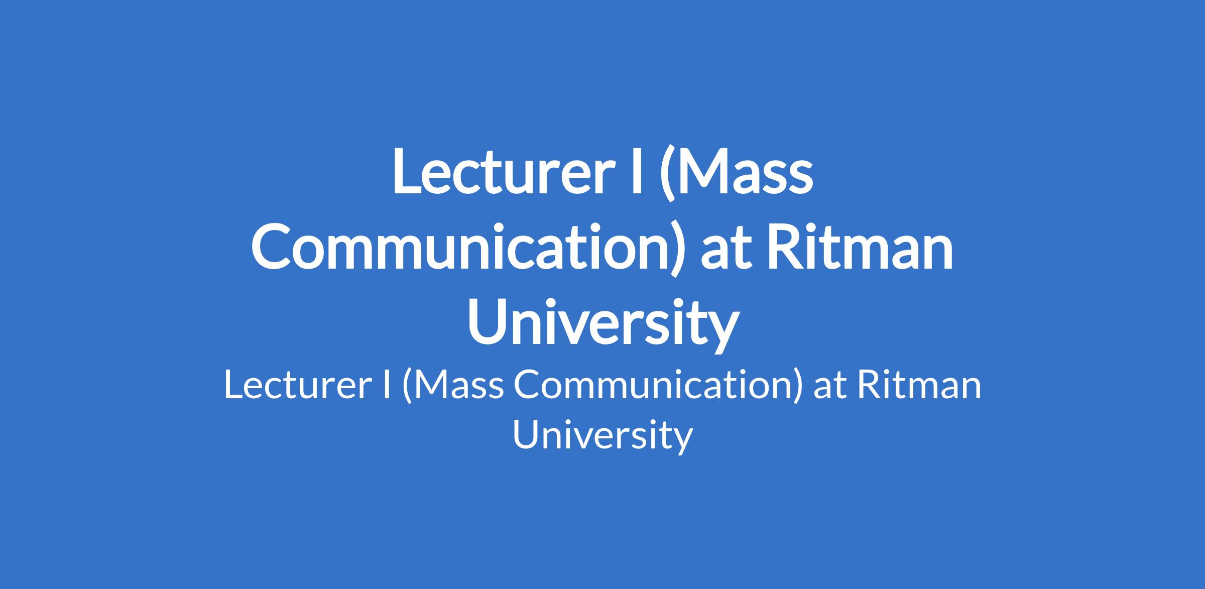 Ritman University is recruiting to fill the position of: Lecturer I (Mass Communication). The position is located in Ikot Ekpene, Akwa Ibom State. Interested candidates should possess a Doctorate Degree (Ph.D.) in the relevant field from a recognized institution and also a good first Degree (Bachelor's) and a Masters Degree in the relevant discipline with at least 5 years of post-qualification relevant teaching and research experience in a university.