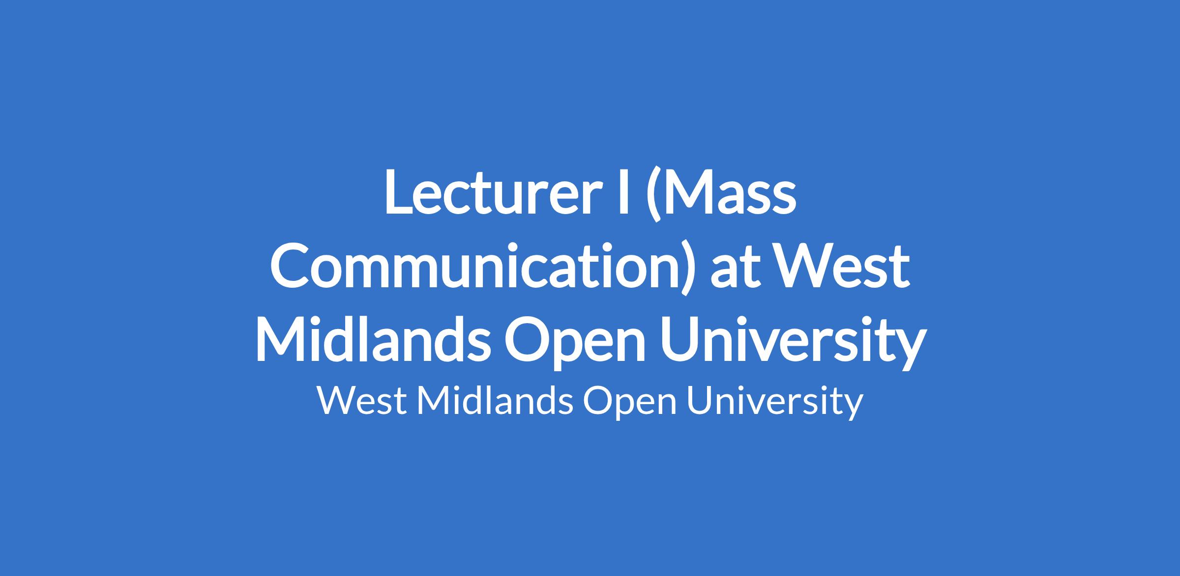 Lecturer I (Mass Communication) at West Midlands Open University