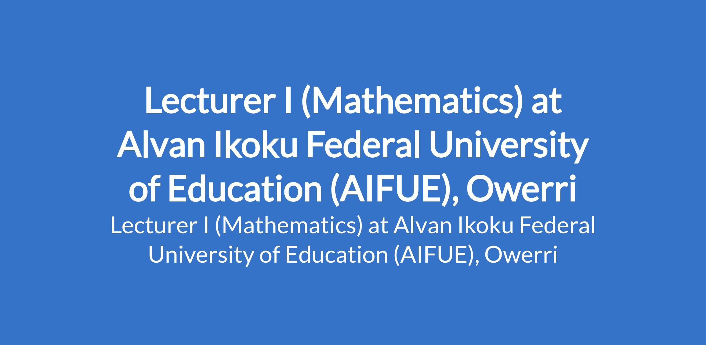 Alvan Ikoku Federal University of Education (AIFUE), Owerri invites applications from suitably qualified candidates for the position of: Lecturer I (Mathematics). The position is located in Imo State. Interested candidates should possess a Master's Degree in the relevant field with a minimum of 6 years of teaching and research experience, and not less than 3 years as a Lectuer II in a recognized university. A PhD in the relevant field shall be an advantage. Applicants must possess evidence of a teaching / research experience with scholary publications.