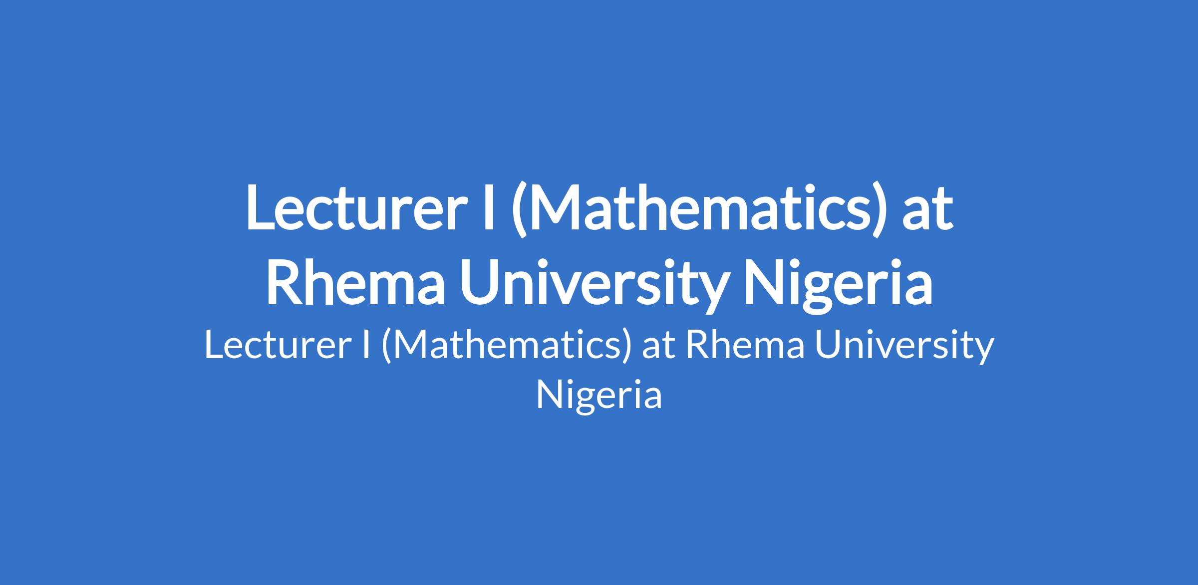 Rhema University Nigeria invites applications from suitably qualified candidates for the position of: Lecturer I (Mathematics). The position is located in Aba, Abia State. Interested candidates should possess a Ph.D Degree with at least 3 years post qualification experience in Mathematics, and evidence of scholary publications.