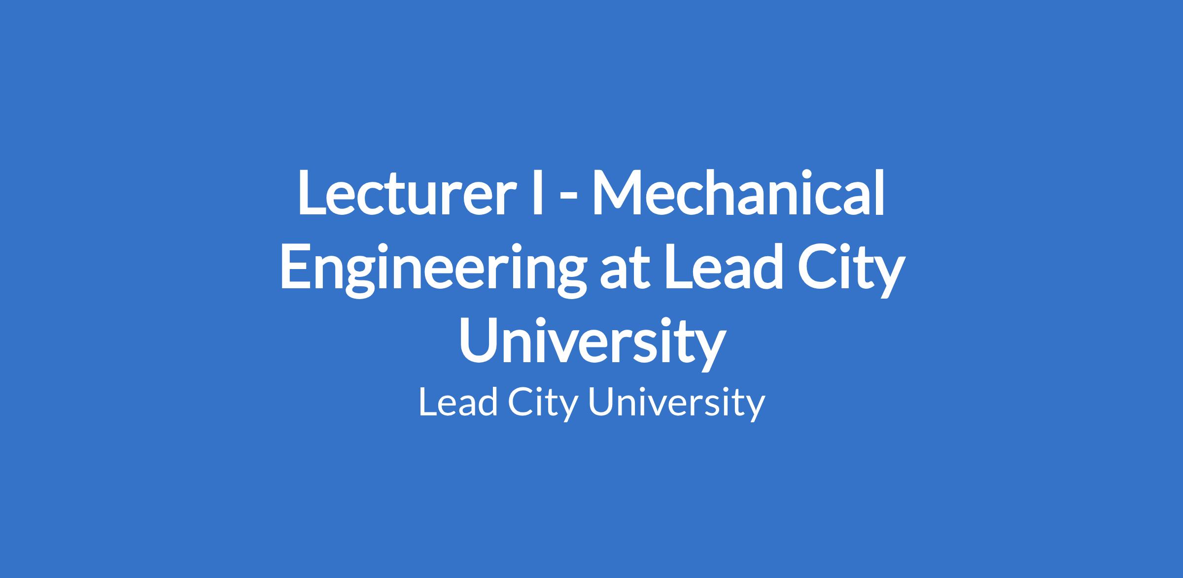 Lecturer I - Mechanical Engineering at Lead City University