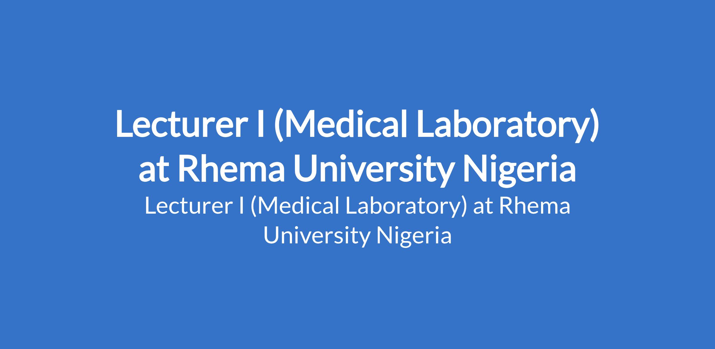 Rhema University Nigeria invites applications from suitably qualified candidates for the position of: Lecturer I (Medical Laboratory). The position is located in Aba, Abia State. Interested candidates should possess a Ph.D Degree with at least 3 years post qualification experience in Medical Laboratory, and evidence of scholarly publications.