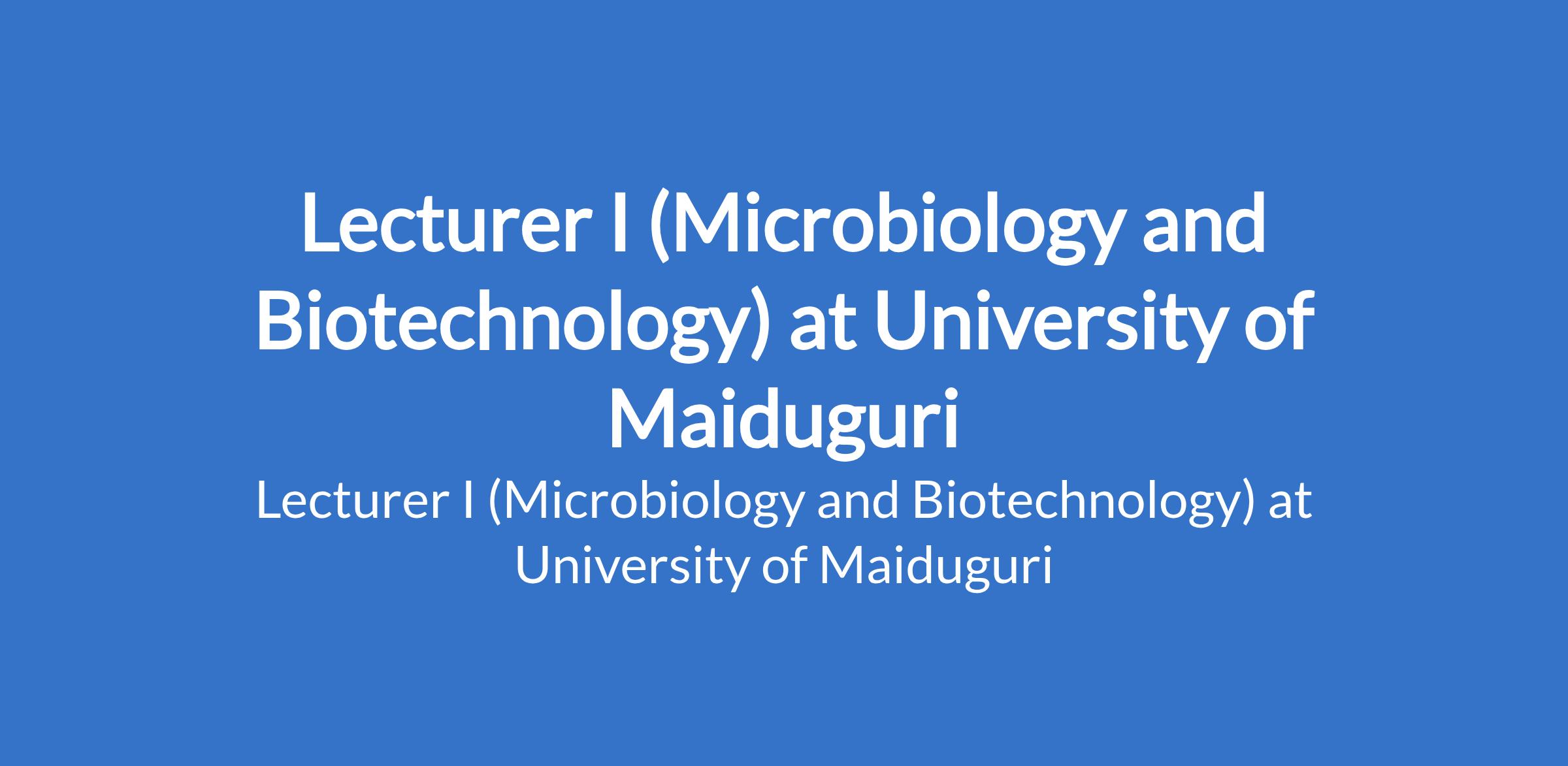 University of Maiduguri invites applications from suitable candidates to fill the position of: Lecturer I (Microbiology and Biotechnology). The position is located in Borno State. Interested candidates should be a Master's Degree holder who has served as Lecturer II or equivalent for three years with a minimum of four years teaching experience and at least 16 admissible publication points, or recognised higher professional postgraduate fellowship where applicable.
