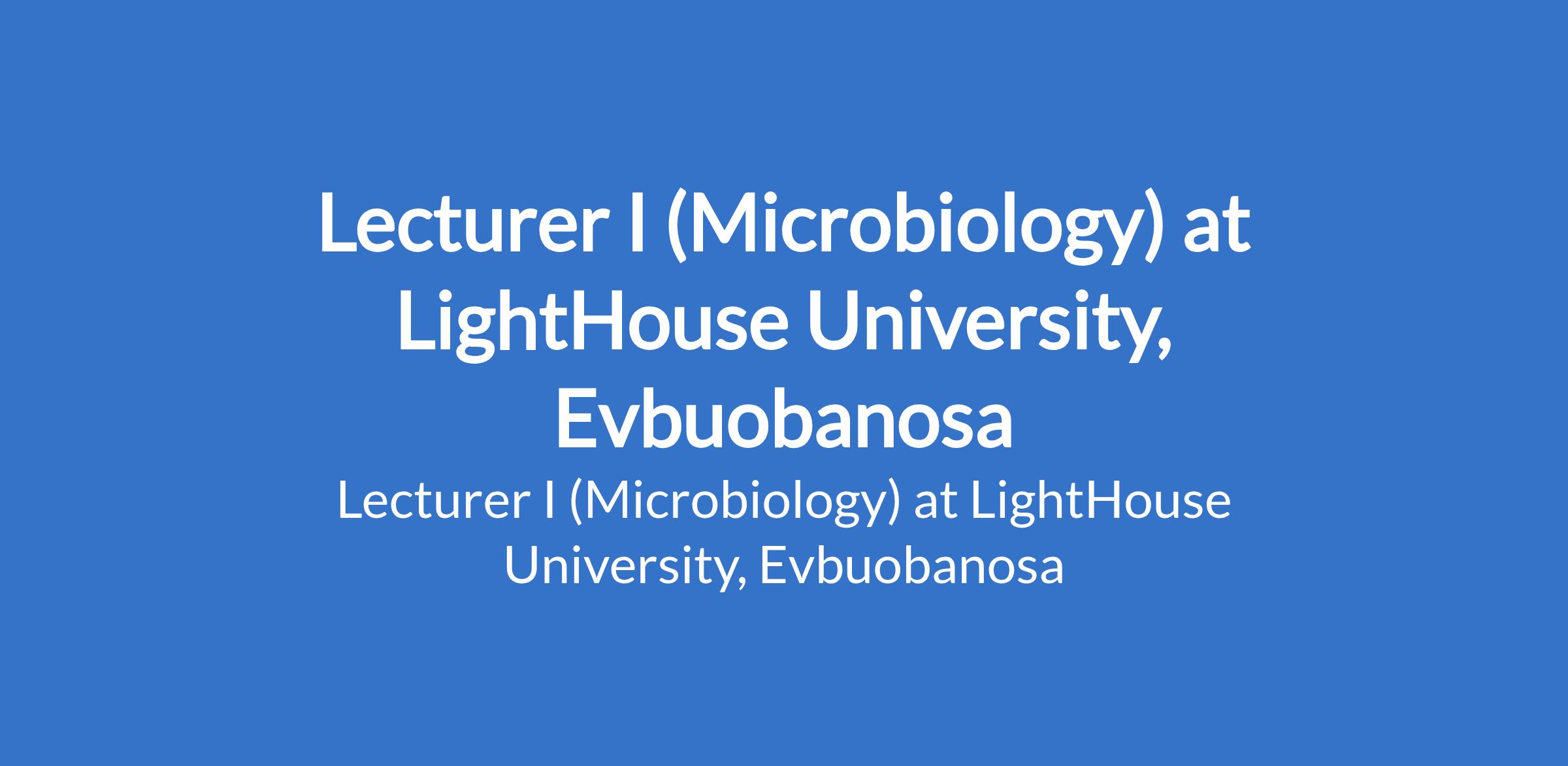 LightHouse University, Evbuobanosa invites applications from suitably qualified candidates to fill the position of: Lecturer I (Microbiology). The position is located in Edo State. Interested candidates should possess a Ph.D. Degree in the relevant field; three years of post-doctoral teaching and research experience is required.