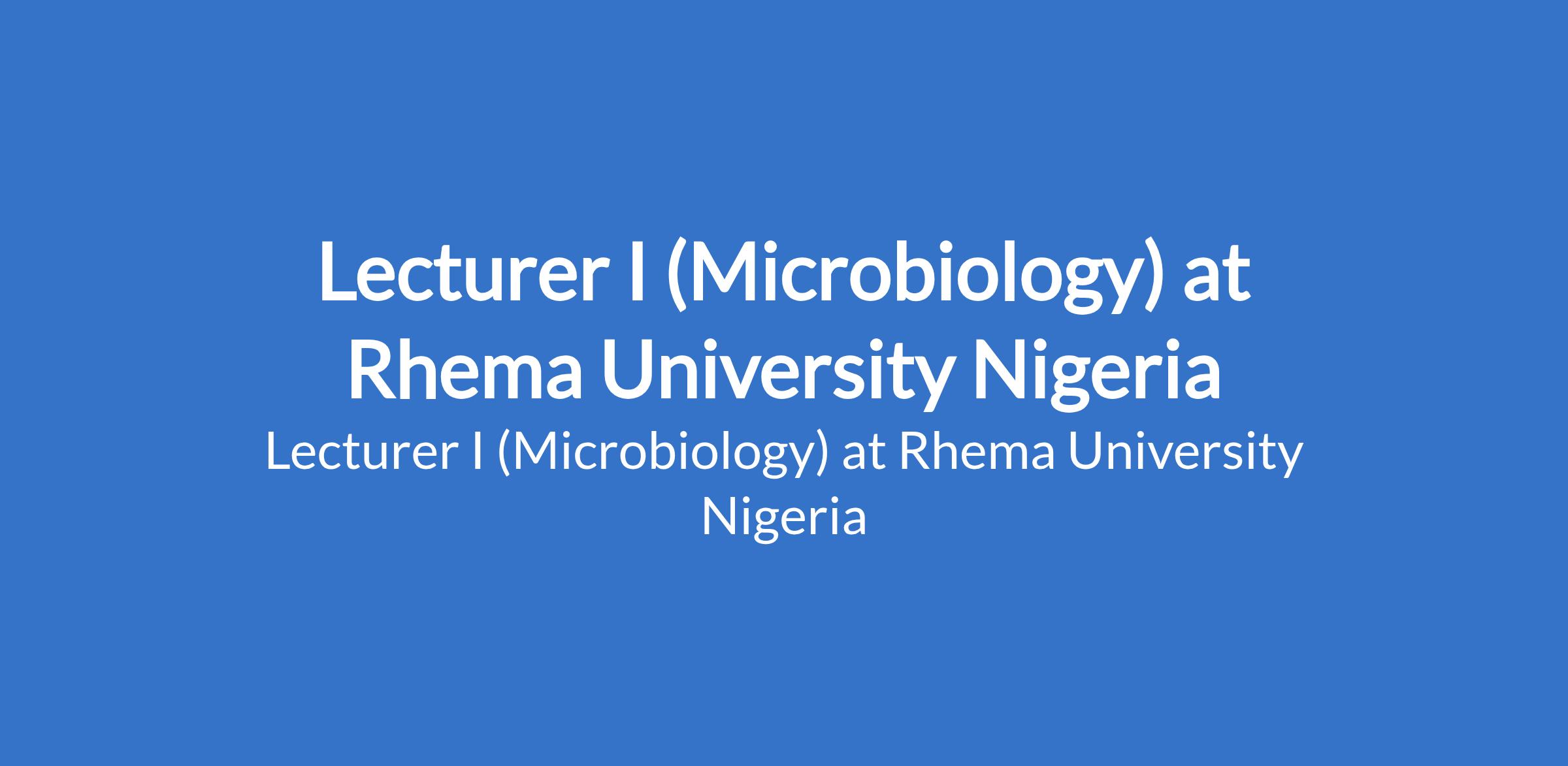 Rhema University Nigeria invites applications from suitably qualified candidates for the position of: Lecturer I (Microbiology). The position is located in Aba, Abia State. Interested candidates should possess a Ph.D Degree with at least 3 years post qualification experience in Microbilogy, and evidence of scholary publications.