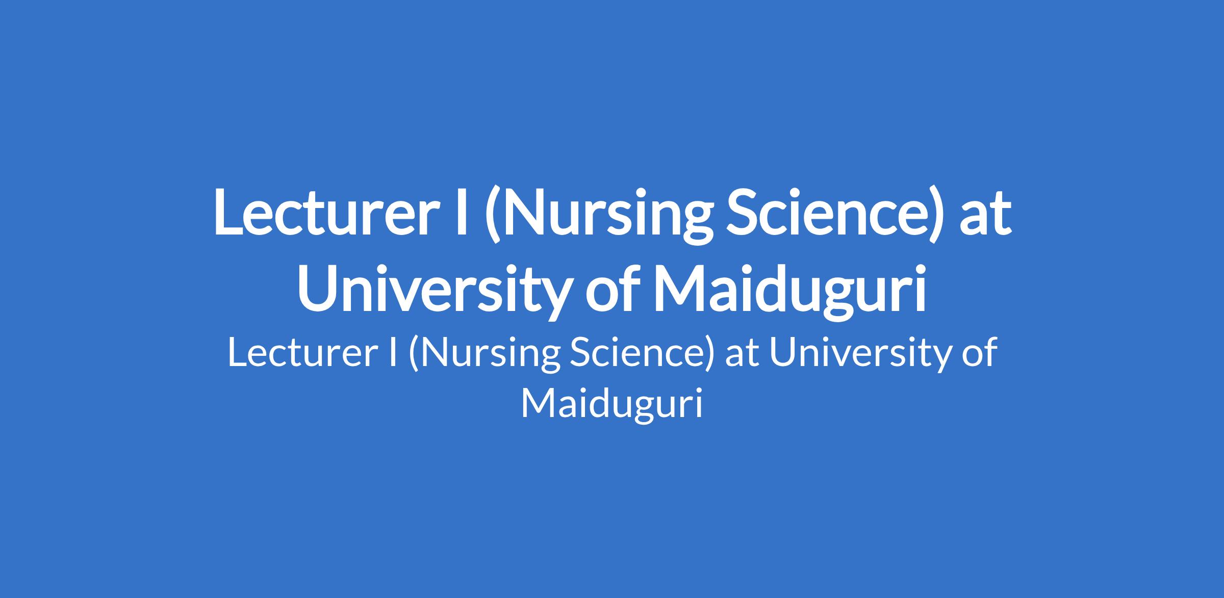 University of Maiduguri invites applications from suitable candidates to fill the position of: Lecturer I (Nursing Science). The position is located in Borno State. Interested candidates should be a Master's Degree holder who has served as Lecturer II or equivalent for three years with a minimum of four years teaching experience and at least 16 admissible publication points, or recognised higher professional postgraduate fellowship where applicable.