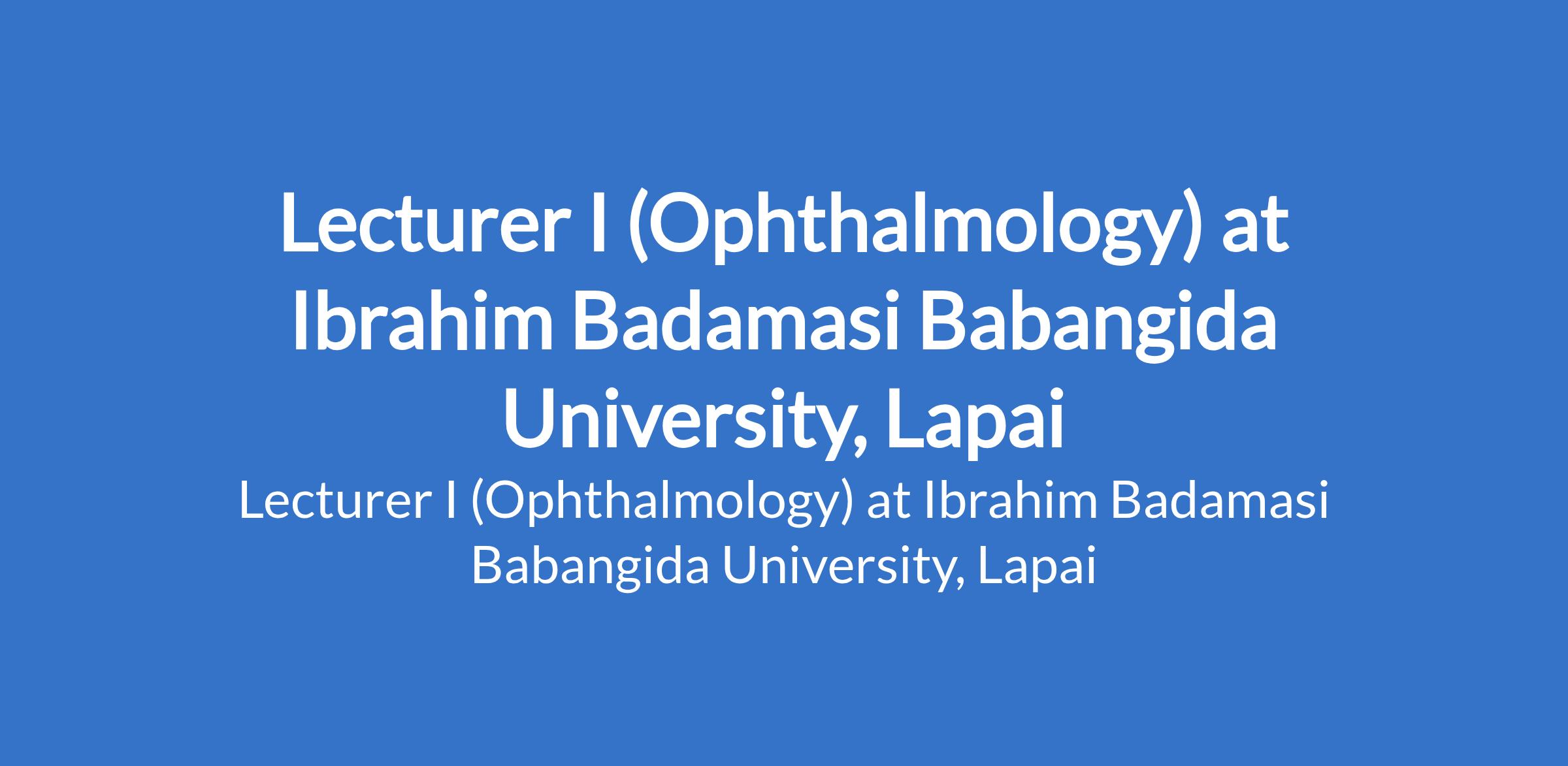 Ibrahim Badamasi Babangida University, Lapai invites applications from suitably qualified candidates to fill the position of: Lecturer I (Ophthalmology). The position is located in Niger State. Interested candidates must possess an M.B.B.S plus Master's Degree (M.Sc), Fellowship of the National Postgraduate Medical College of Nigeria or its equivalent in the relevant specialty/sub specialty with at least 3 years relevant experience.