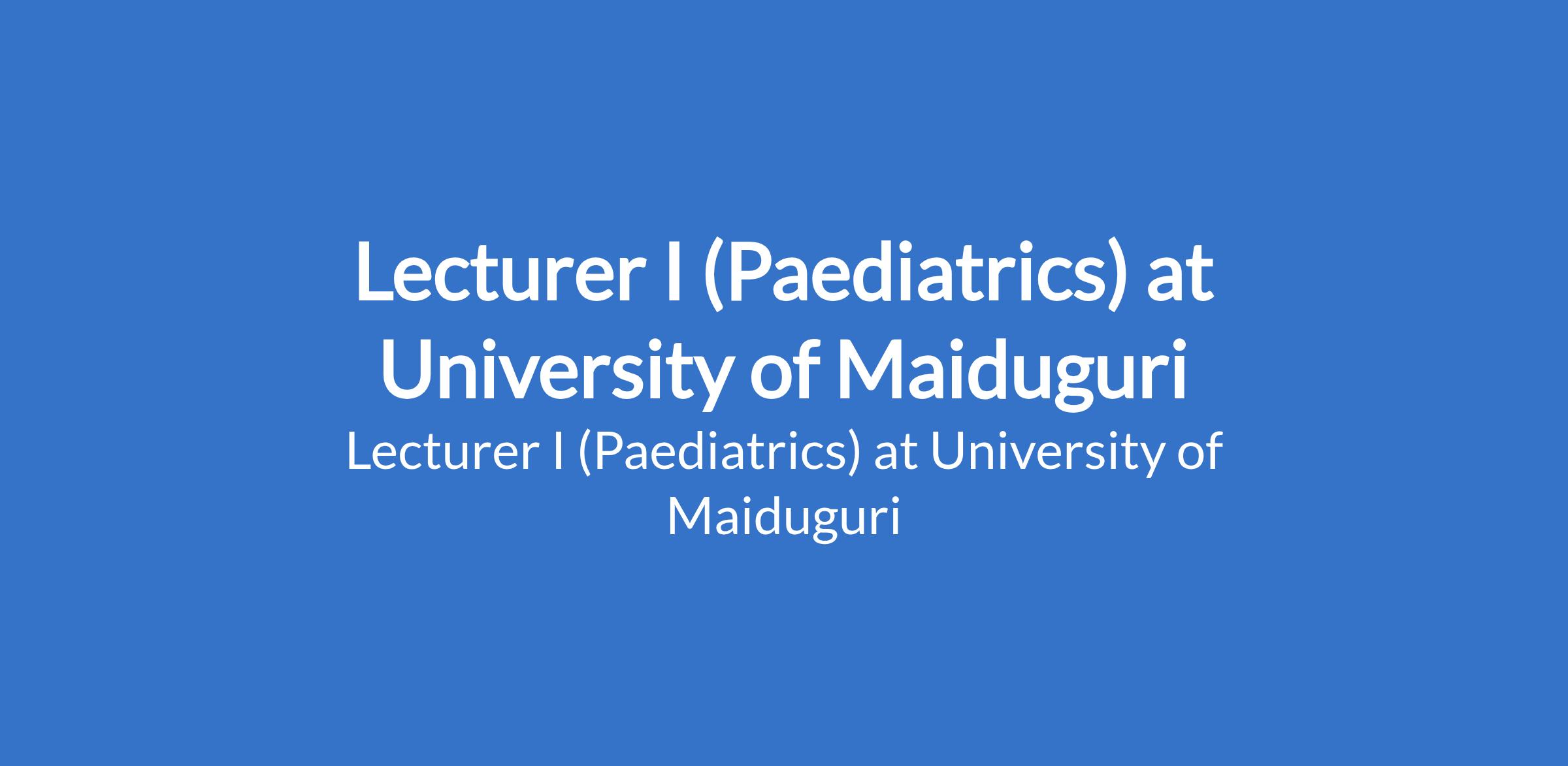 University of Maiduguri invites applications from suitable candidates to fill the position of: Lecturer I (Paediatrics). The position is located in Borno State. Interested candidates should be a Master's Degree holder who has served as Lecturer II or equivalent for three years with a minimum of four years teaching experience and at least 16 admissible publication points, or recognised higher professional postgraduate fellowship where applicable.