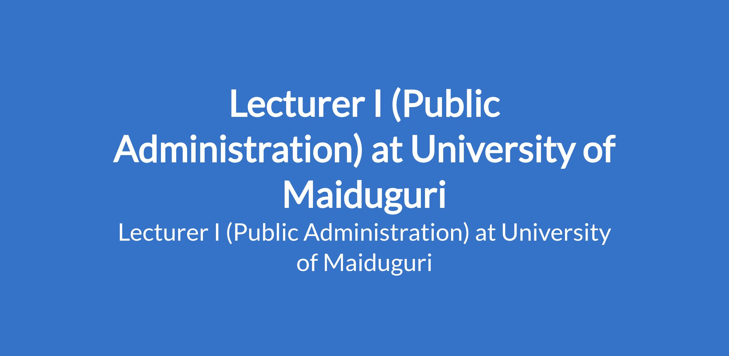 University of Maiduguri invites applications from suitable candidates to fill the position of: Lecturer I (Public Administration). The position is located in Borno State. Interested candidates should be a Master's Degree holder who has served as Lecturer II or equivalent for three years with a minimum of four years teaching experience and at least 16 admissible publication points, or recognised higher professional postgraduate fellowship where applicable.