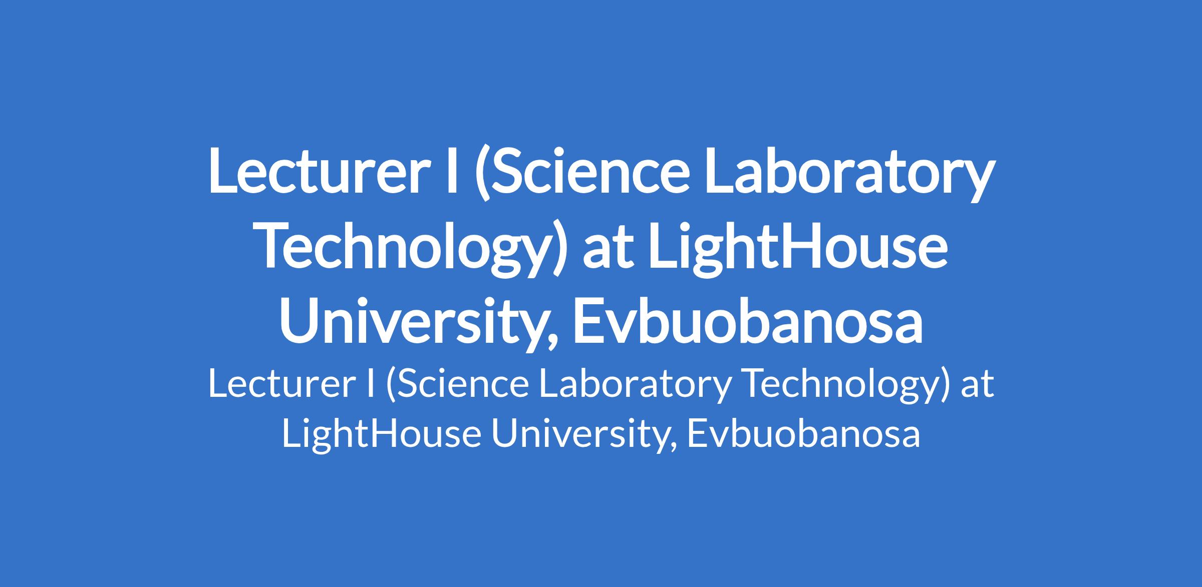 LightHouse University, Evbuobanosa invites applications from suitably qualified candidates to fill the position of: Lecturer I (Science Laboratory Technology). The position is located in Edo State. Interested candidates should possess a Ph.D. Degree in the relevant field; three years of post-doctoral teaching and research experience is required.