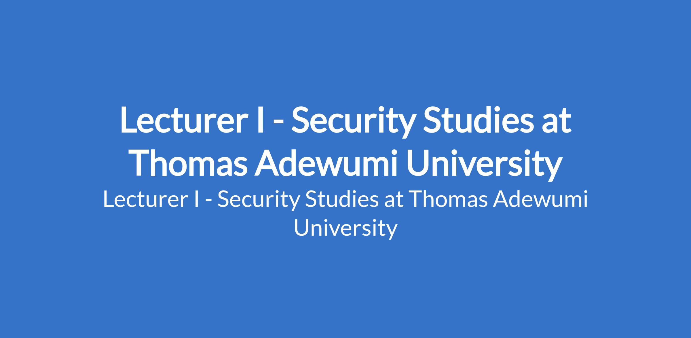 Thomas Adewumi University invites applications from suitable candidates to fill the position of: Lecturer I - Security Studies. The position is located in Kwara State. Interested candidates should possess a Ph.D. in Security Studies, Criminology, Criminal Justice, or a closely related field with three to five years of teaching experience at the university level.