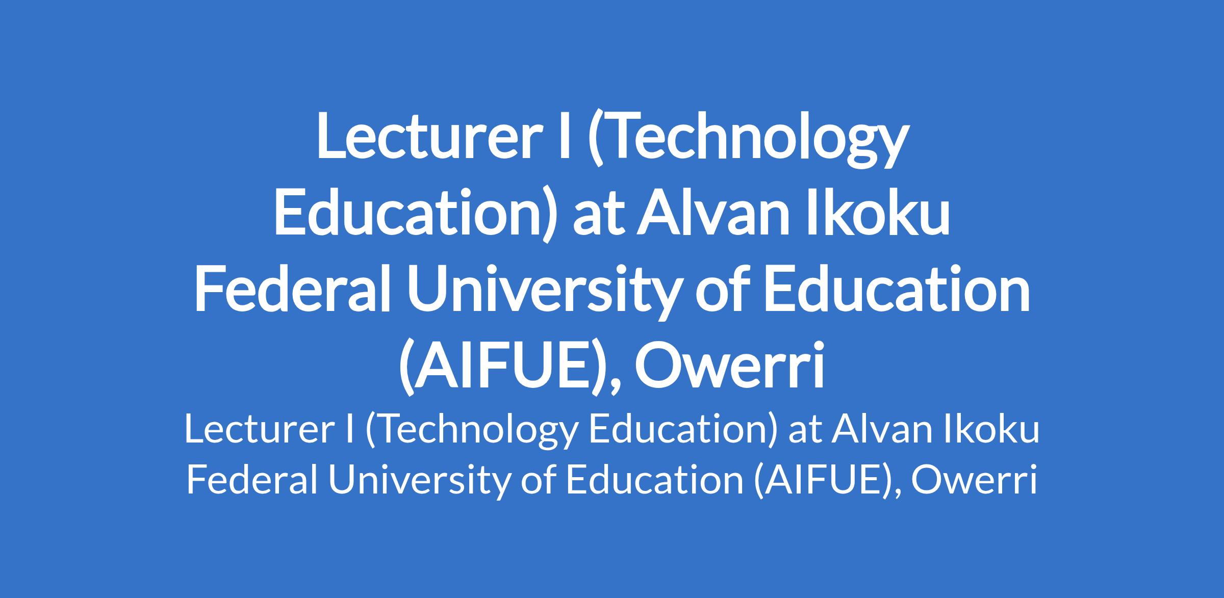 Alvan Ikoku Federal University of Education (AIFUE), Owerri invites applications from suitably qualified candidates for the position of: Lecturer I (Technology Education). The position is located in Imo State. Interested candidates should possess a Master's Degree in the relevant field with a minimum of 6 years of teaching and research experience, and not less than 3 years as a Lectuer II in a recognized university. A PhD in the relevant field shall be an advantage. Applicants must possess evidence of a teaching / research experience with scholary publications.