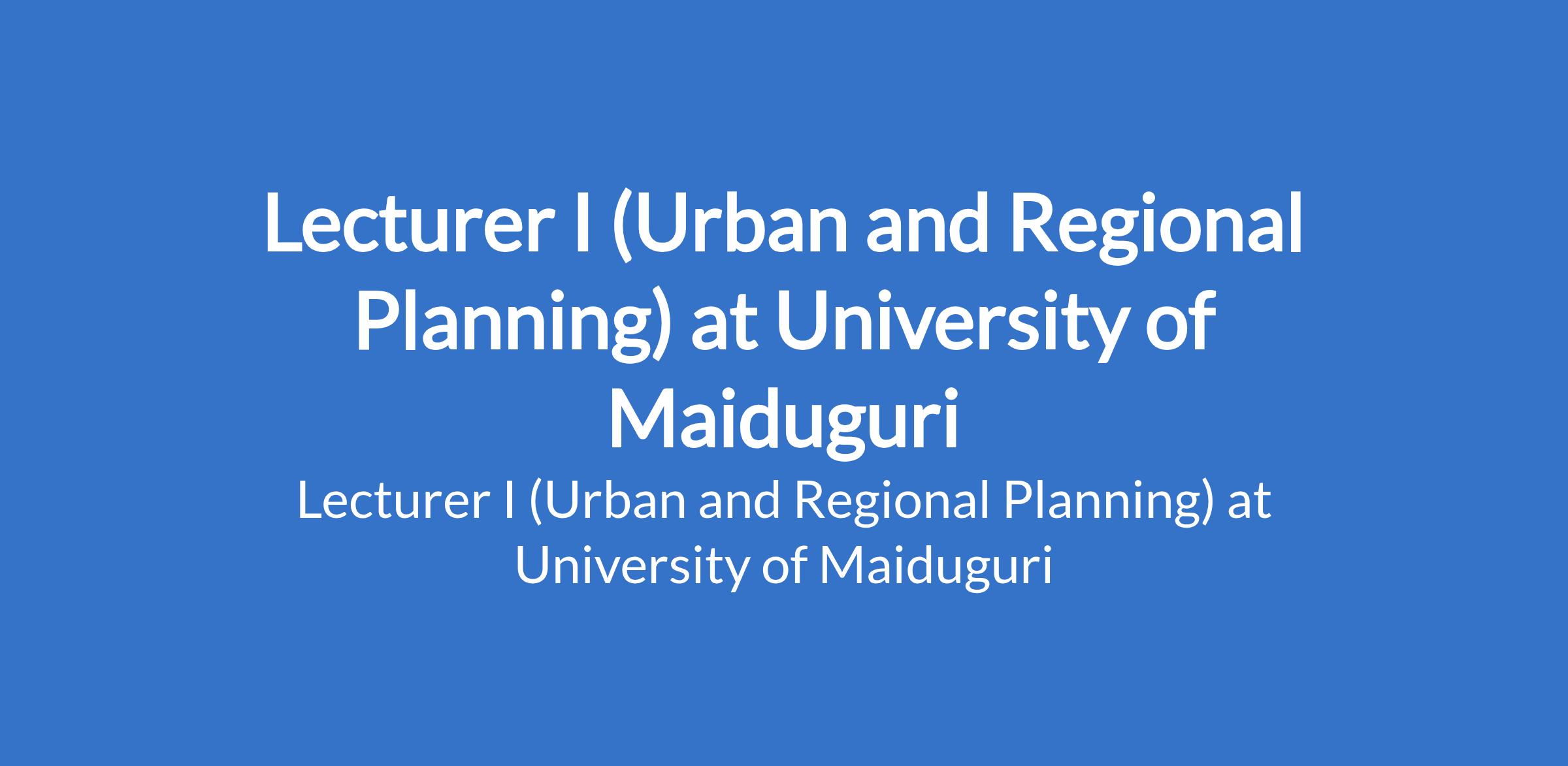 University of Maiduguri invites applications from suitable candidates to fill the position of: Lecturer I (Urban and Regional Planning). The position is located in Borno State. Interested candidates should be a Master's Degree holder who has served as Lecturer II or equivalent for three years with a minimum of four years teaching experience and at least 16 admissible publication points, or recognised higher professional postgraduate fellowship where applicable.
