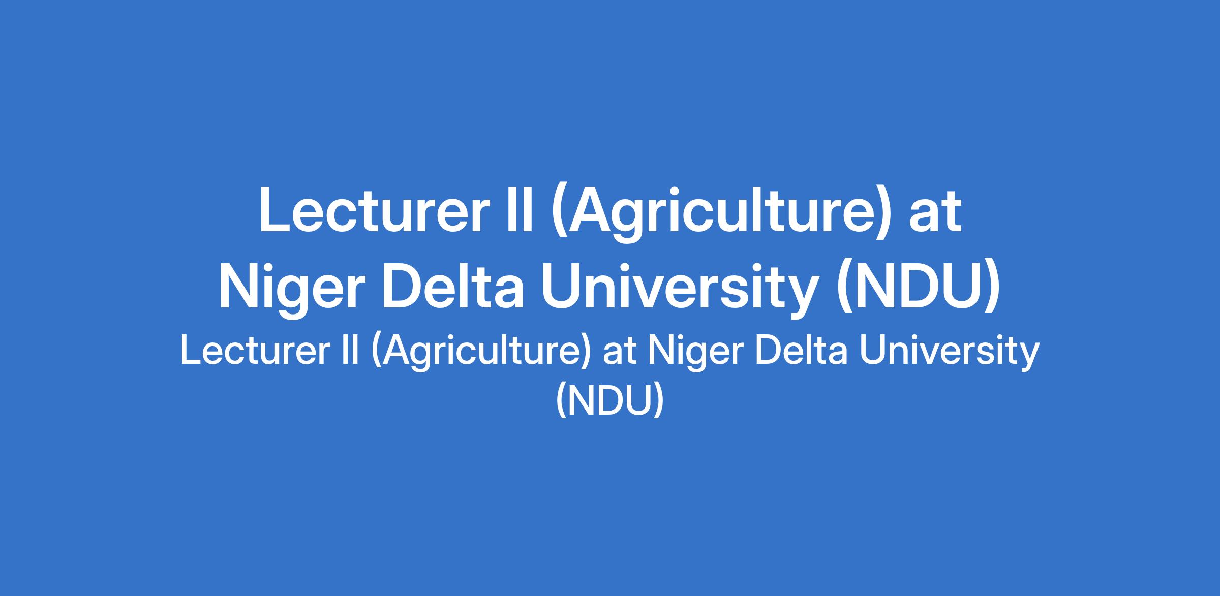 Niger Delta University (NDU) invites applications from suitably qualified candidates to fill the position of: Lecturer II (Agriculture). The position is located in Wilberforce Island, Bayelsa State. Interested candidates should possess a Ph.D. from a recognized university, or a Masters degree with at least one journal publication with minimum of three years pre-teaching experience.