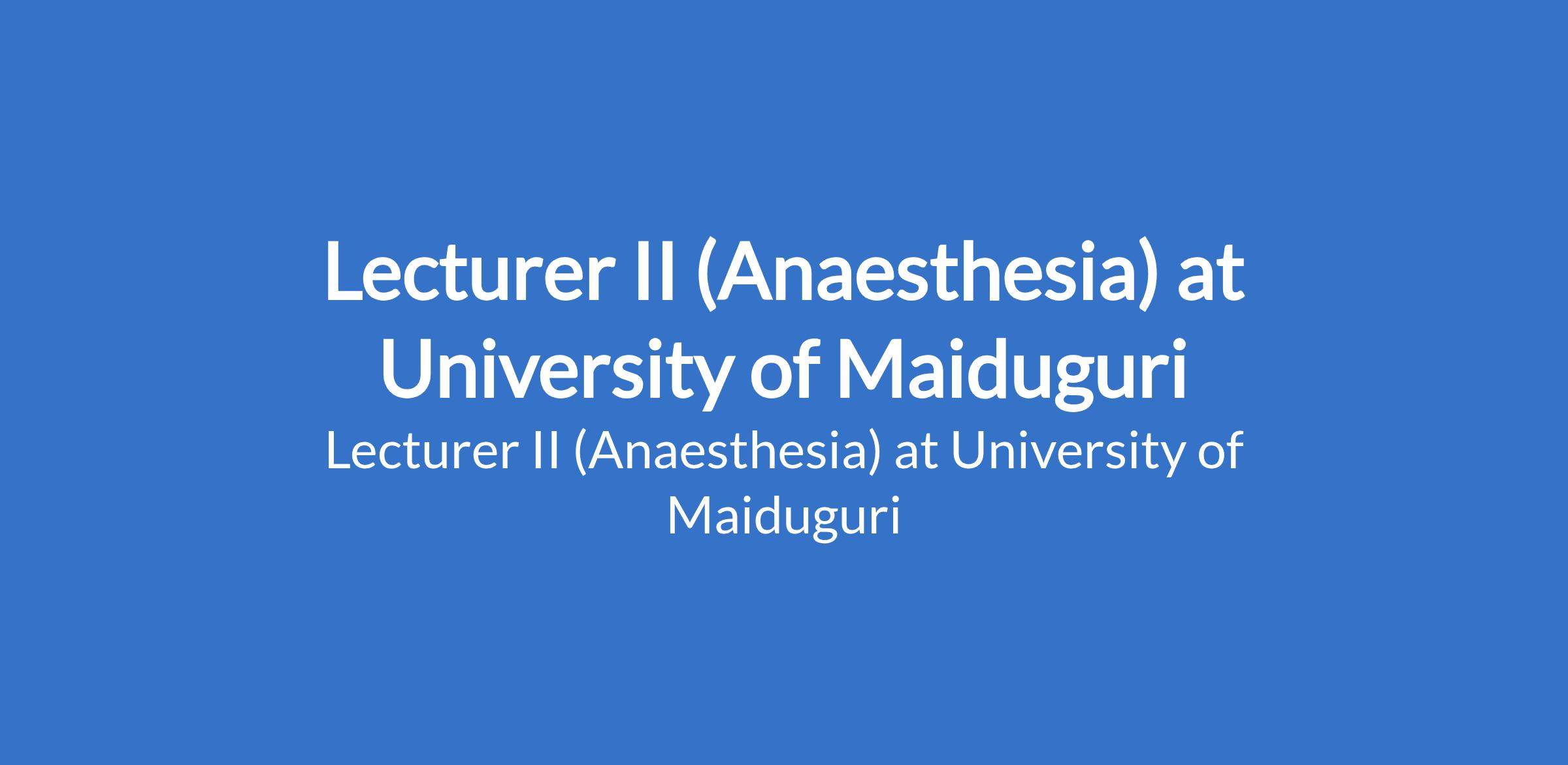 University of Maiduguri invites applications from suitable candidates to fill the position of: Lecturer II (Anaesthesia). The position is located in Borno State. Interested candidates should possess a Master's Degree from University of Maiduguri or another recognised institution with at least three years post-qualification experience.