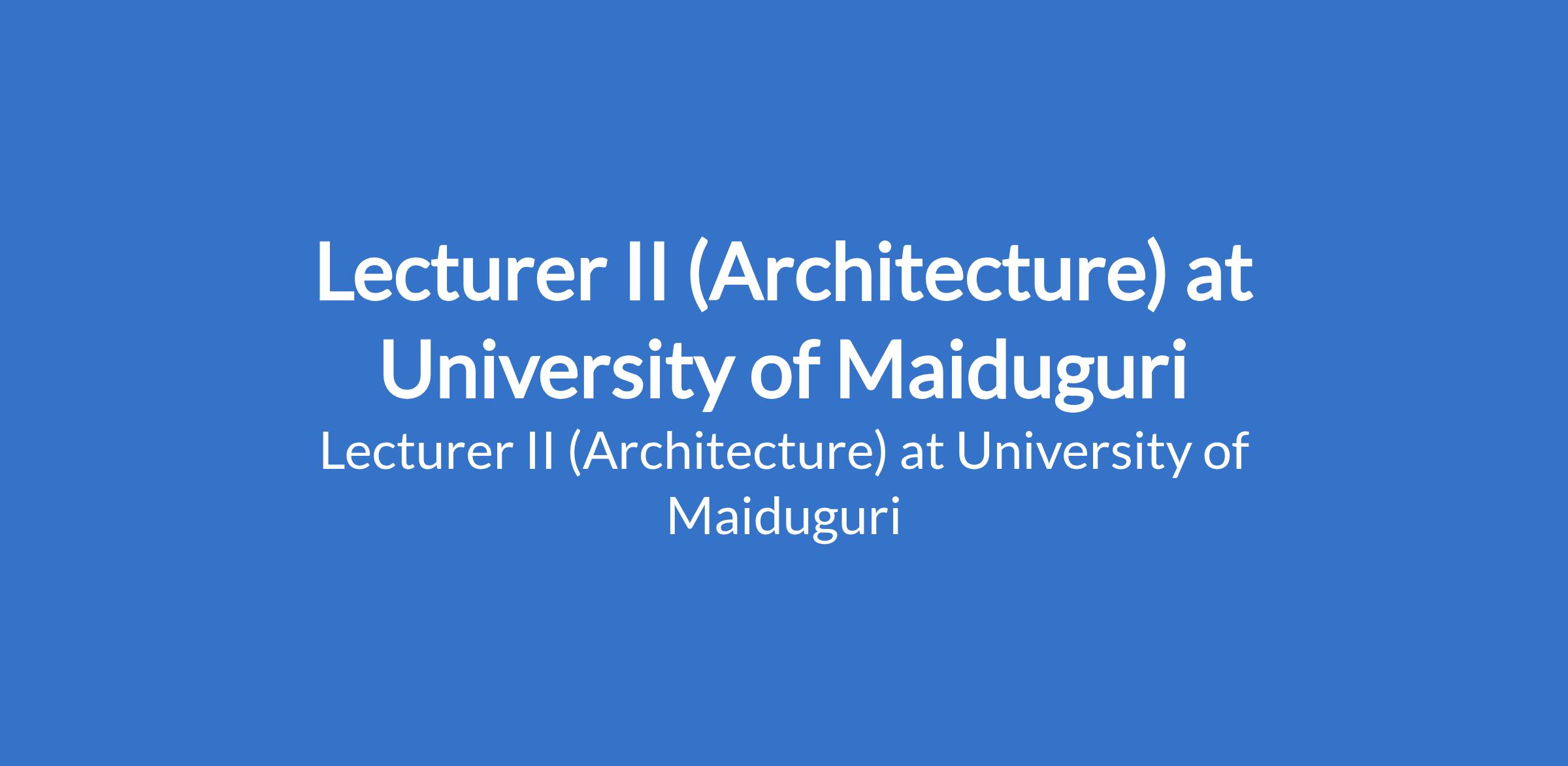 University of Maiduguri invites applications from suitable candidates to fill the position of: Lecturer II (Architecture). The position is located in Borno State. Interested candidates should possess a Master's Degree from University of Maiduguri or another recognised institution with at least three years post-qualification experience.