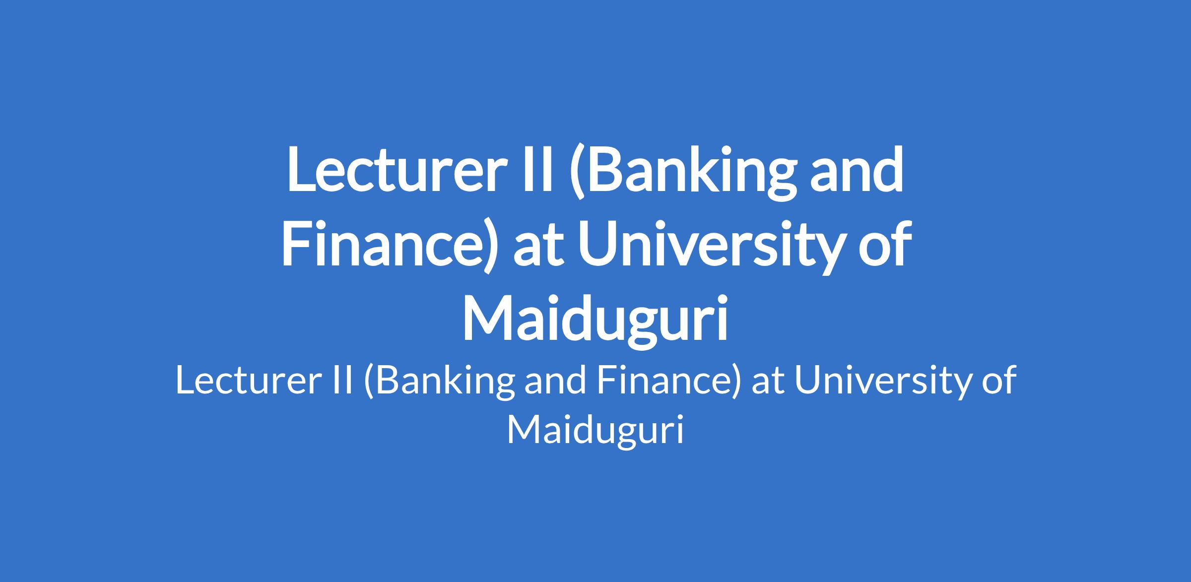 University of Maiduguri invites applications from suitable candidates to fill the position of: Lecturer II (Banking and Finance). The position is located in Borno State. Interested candidates should possess a Master's Degree from University of Maiduguri or another recognised institution with at least three years post-qualification experience.