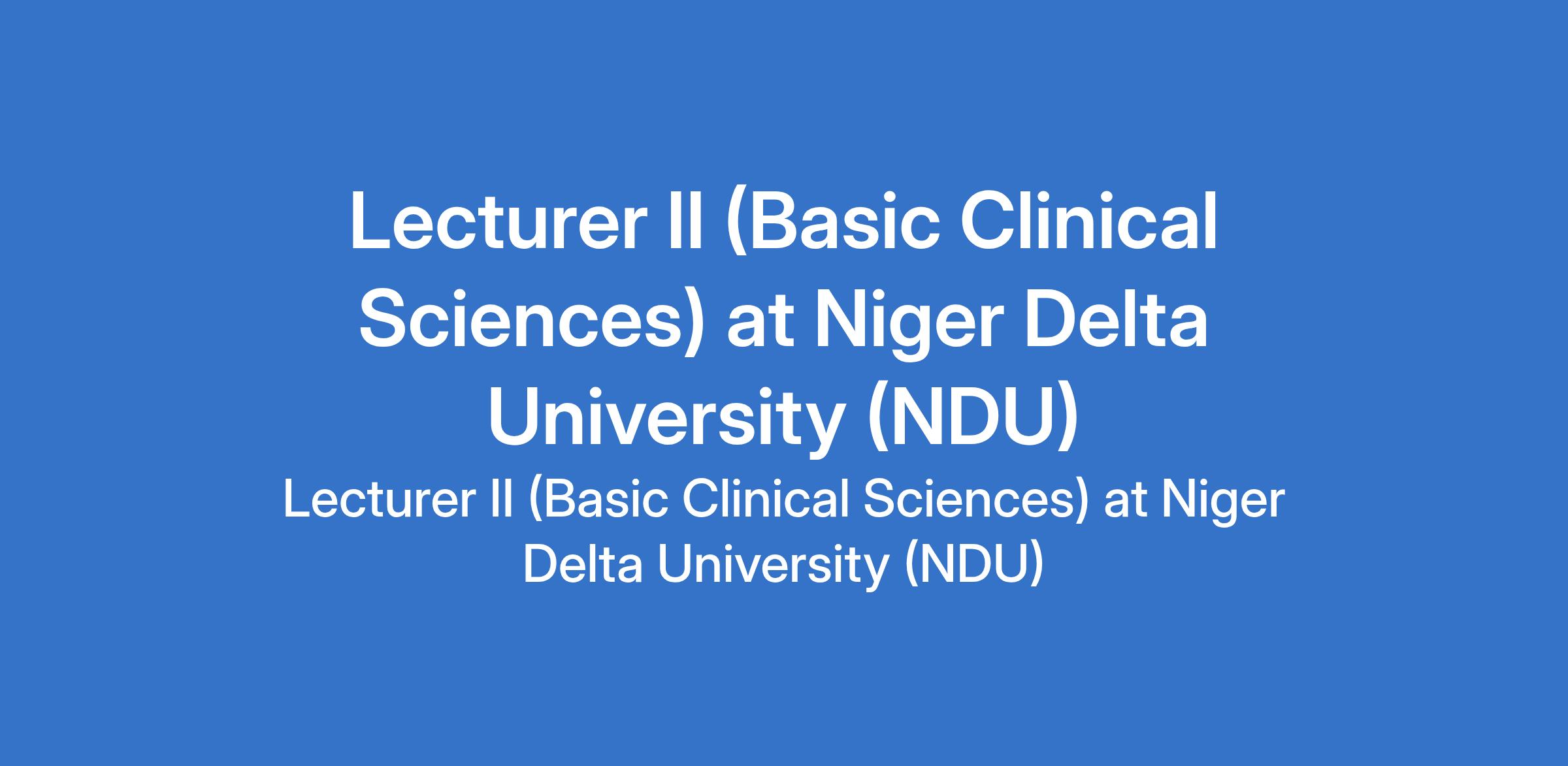 The Niger Delta University (NDU) invites applications from suitably qualified candidates to fill the position of: Lecturer II (Basic Clinical Sciences). The position is located in Wilberforce Island, Bayelsa State. Interested candidates should possess a PhD from a recognized university, or a Masters degree with at least one journal publication with a minimum of three years of pre-teaching experience.