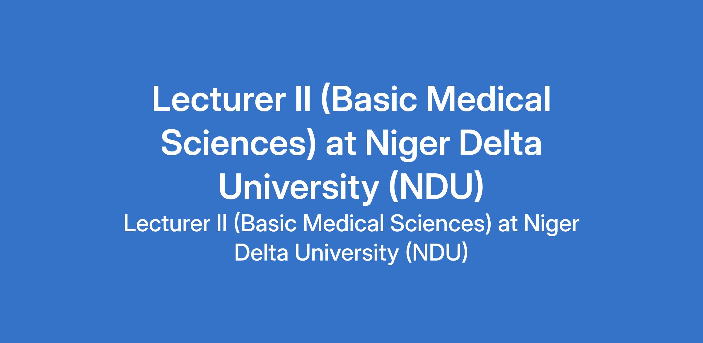 Niger Delta University (NDU) invites applications from suitably qualified candidates to fill the position of: Lecturer II (Basic Medical Sciences). The position is located in Wilberforce Island, Bayelsa State. Interested candidates should possess a Ph.D. from a recognized university, or a Masters degree with at least one journal publication with minimum of three years pre-teaching experience.