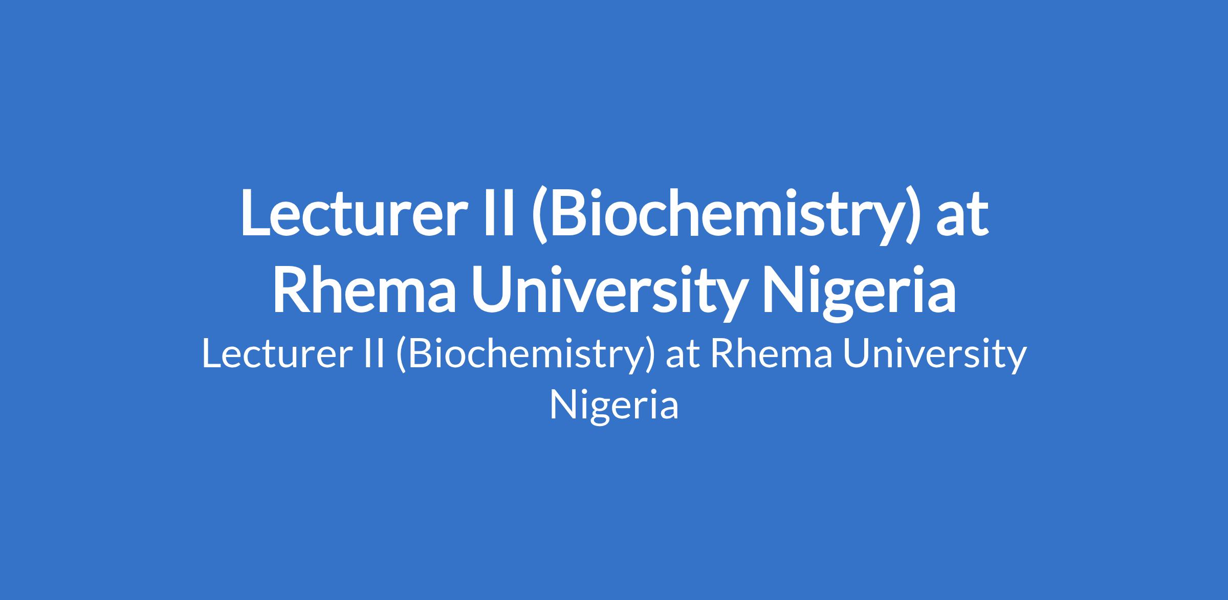 Rhema University Nigeria invites applications from suitably qualified candidates for the position of: Lecturer II (Biochemistry). The position is located in Aba, Abia State. Interested candidates should possess a Ph.D Degree with relevant experience.