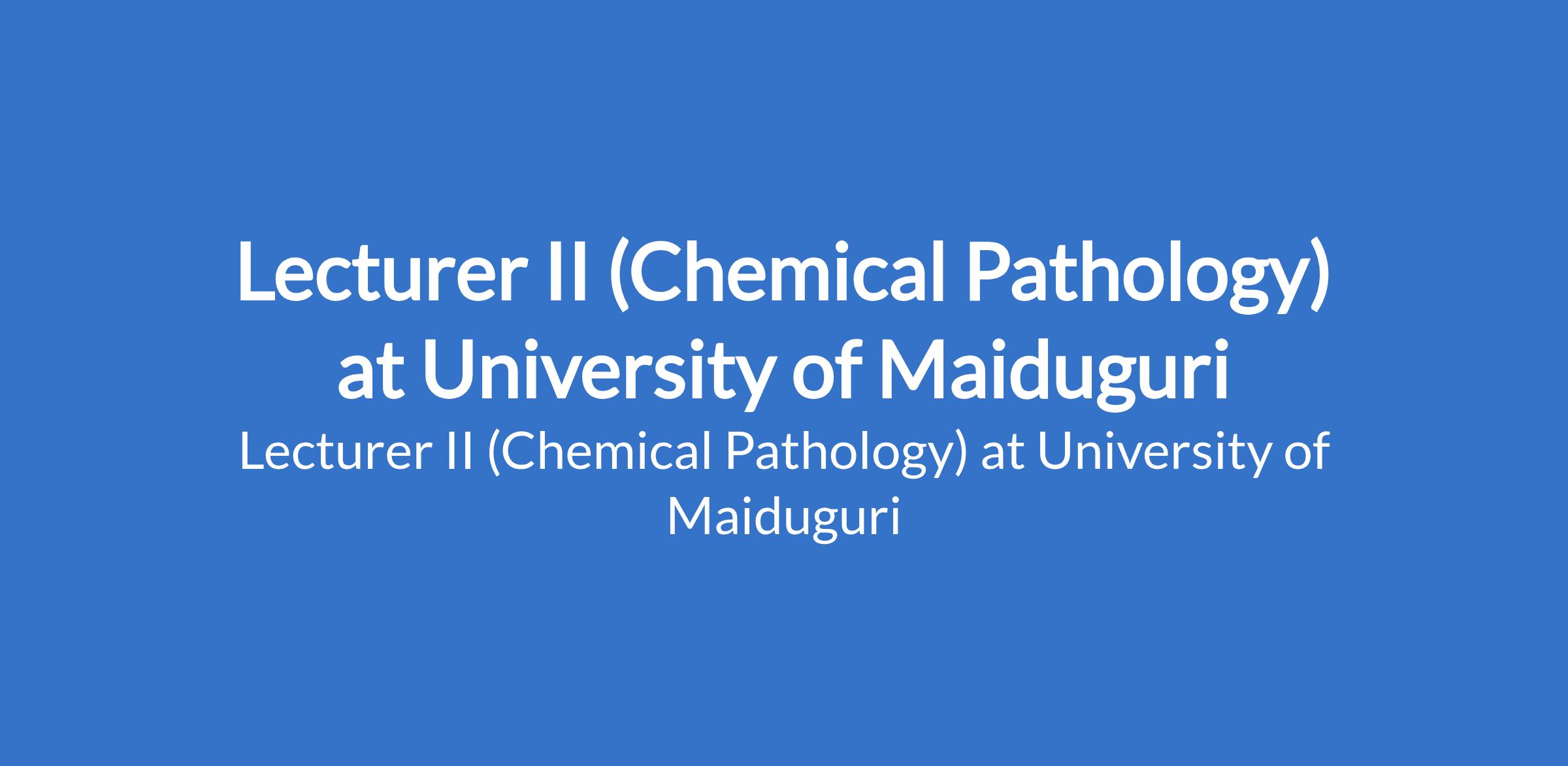 University of Maiduguri invites applications from suitable candidates to fill the position of: Lecturer II (Chemical Pathology). The position is located in Borno State. Interested candidates should possess a Master's Degree from University of Maiduguri or another recognised institution with at least three years post-qualification experience.