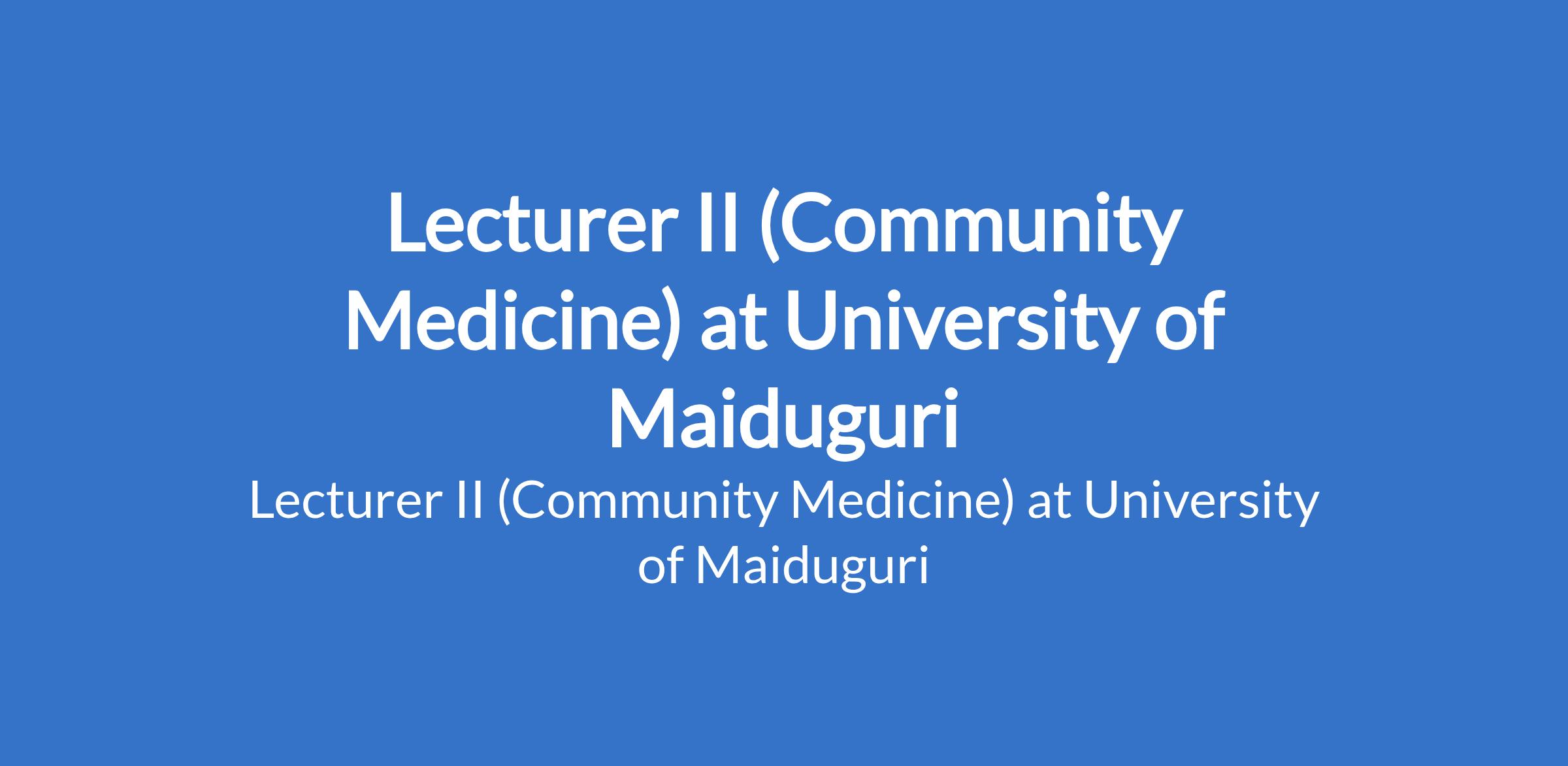 University of Maiduguri invites applications from suitable candidates to fill the position of: Lecturer II (Community Medicine). The position is located in Borno State. Interested candidates should possess a Master's Degree from University of Maiduguri or another recognised institution with at least three years post-qualification experience.