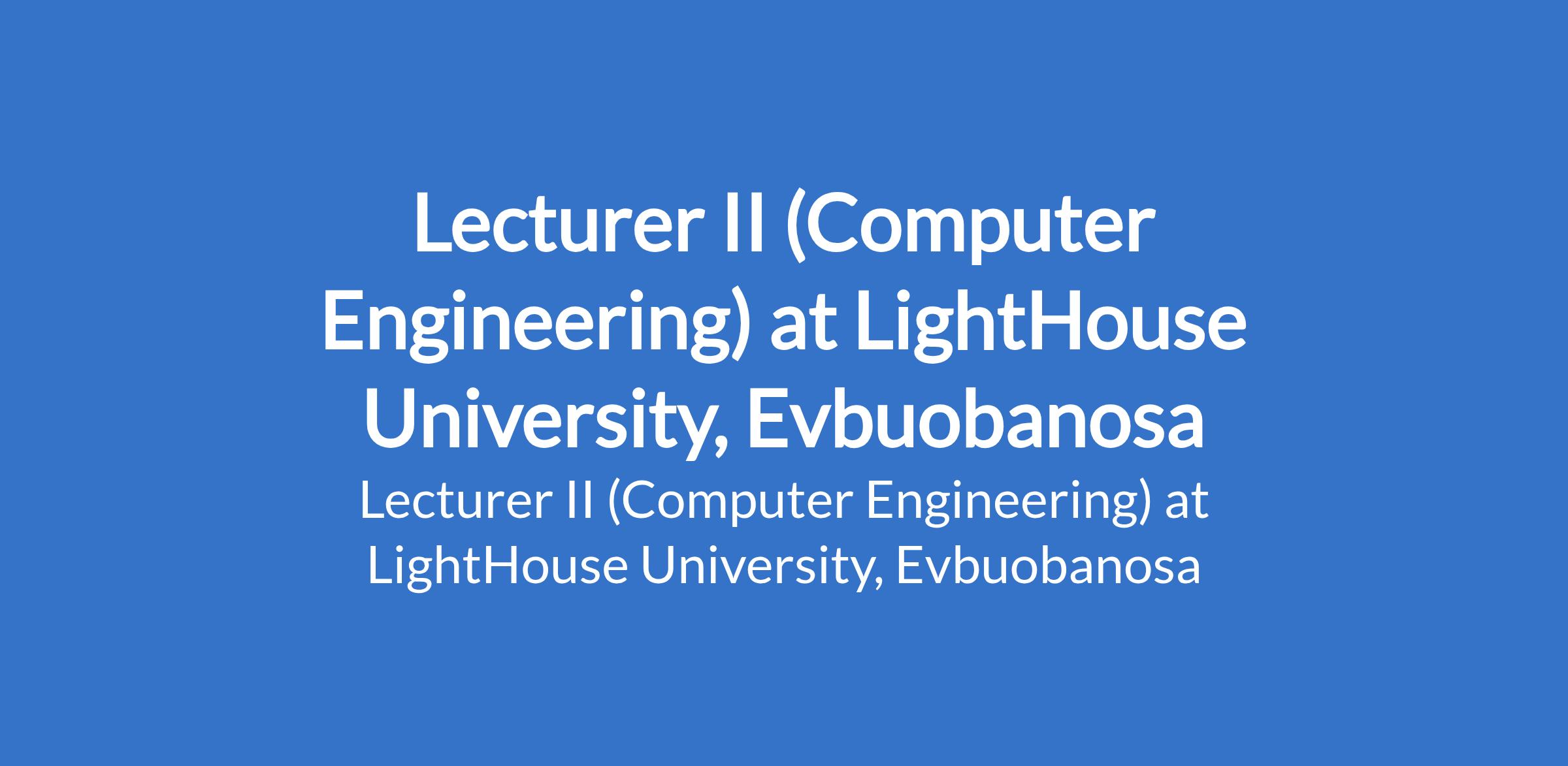 LightHouse University, Evbuobanosa invites applications from suitably qualified candidates to fill the position of: Lecturer II (Computer Engineering). The position is located in Edo State. Interested candidates should possess a Ph.D Degree in a relevant field or have evidence of Ph.D defense required with experience.