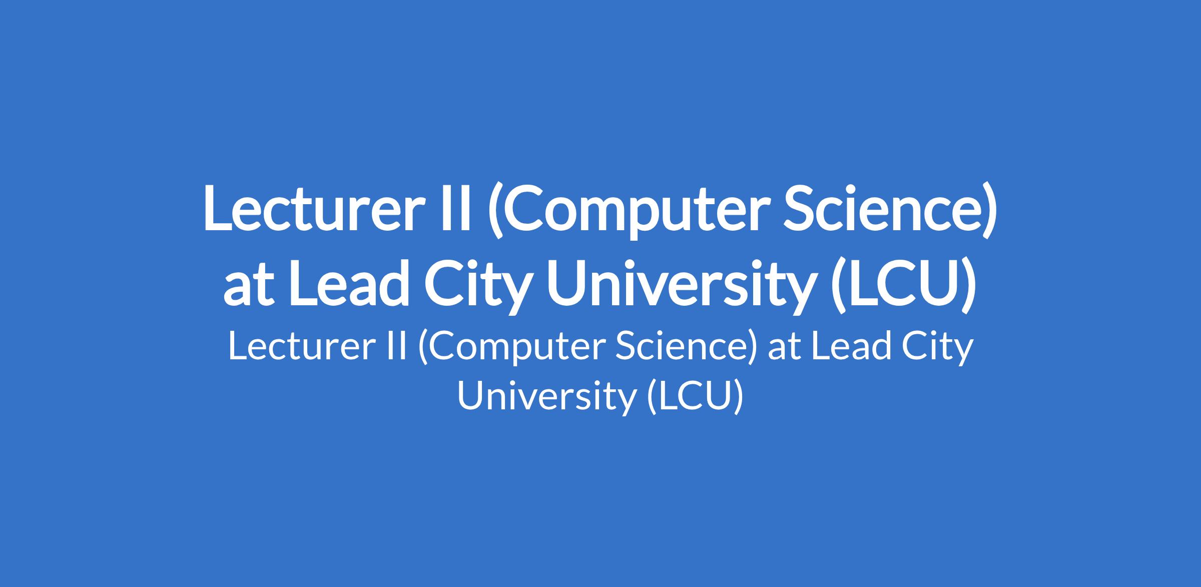 LLead City University (LCU) invites applications from suitable candidates to fill the position of: Lecturer II (Computer Science). The position is located in Ibadan, Oyo State. Interested candidates should possess a good First Degree, not below second class lower division, from a reputable University and a PhD Degree in the appropriate discipline, a Master's Degree plus a recognised professional certificate / licence in the appropriate discipline will also be considered.